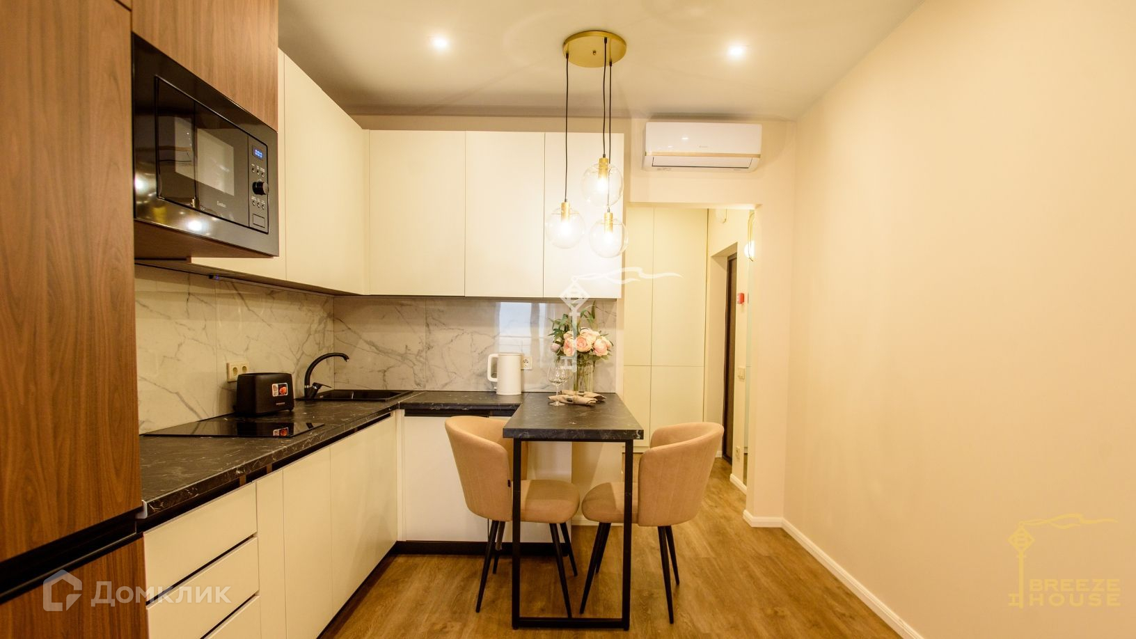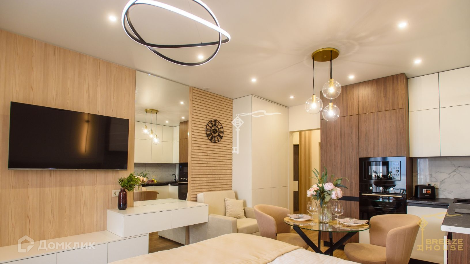 В апартаментах выполнен современный премиальный ремонт с максимально эффективным использованием полезного пространства. В интерьере преобладают натуральные материалы, изящные элементы декора и современное освещение.