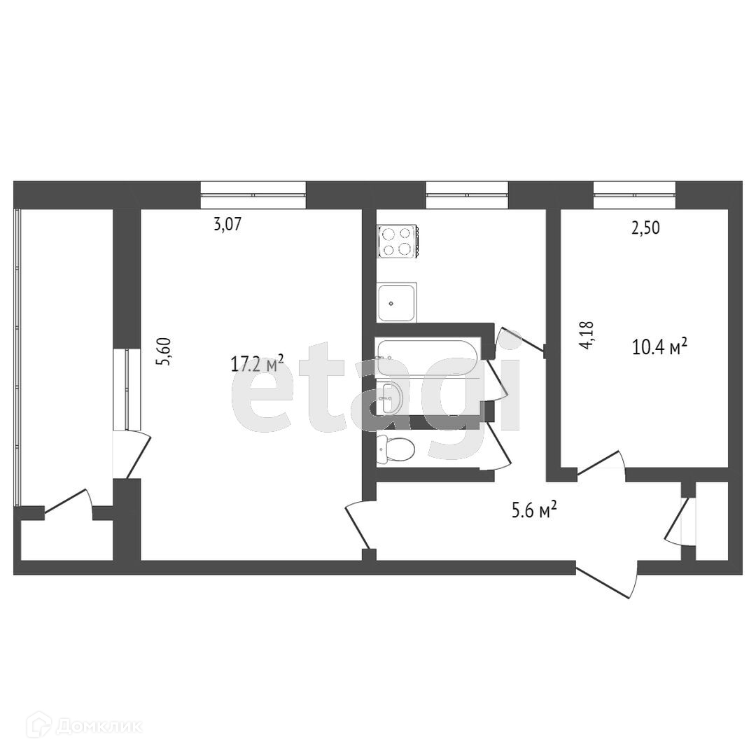 Общая площадь 43.5 м2
