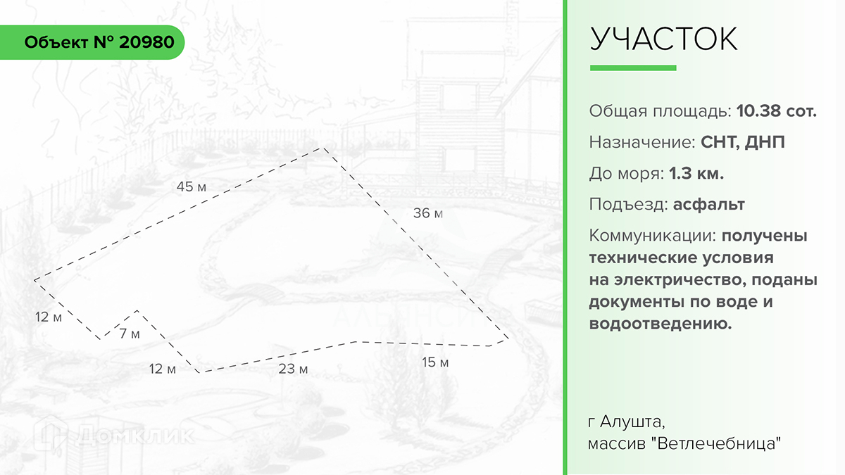 Участок в СНТ, 10.38 сот. на продажу в Алуште, Вишнёвая улица