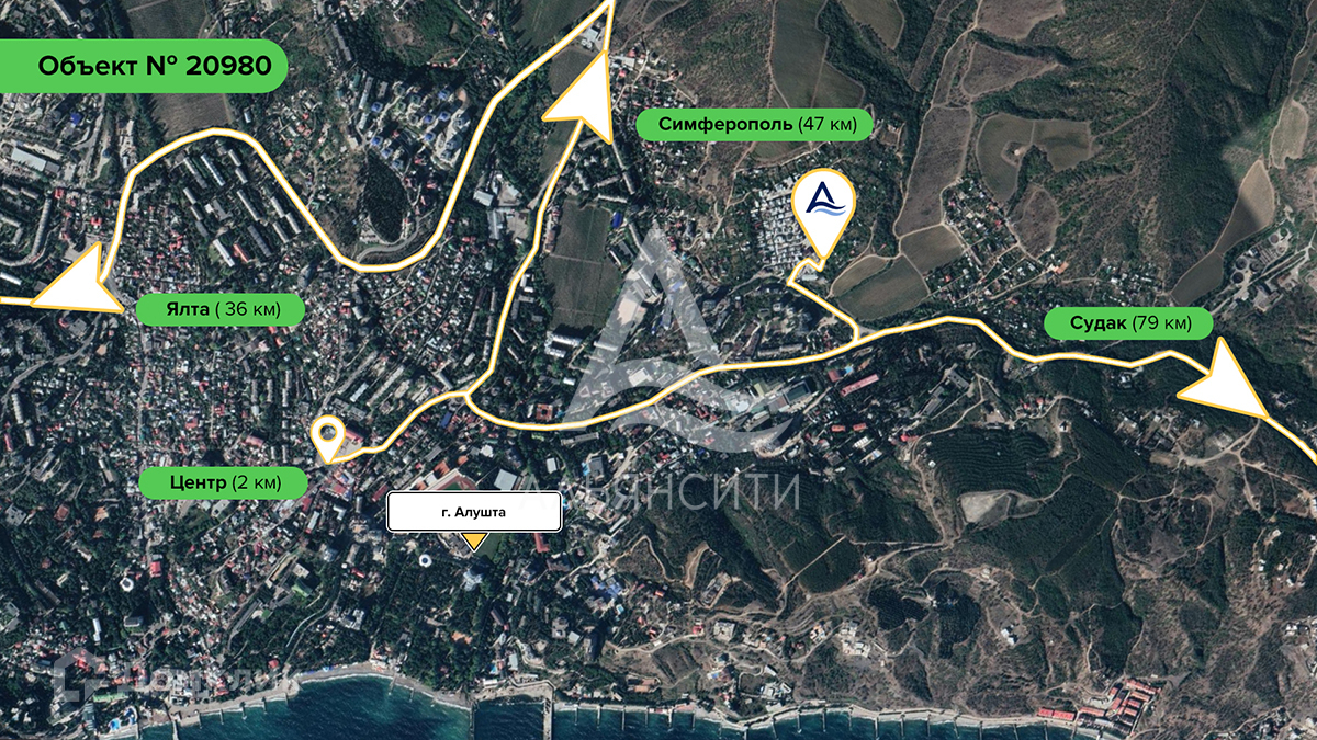 Продается земельный участок в городе Алушта в районе улицы Судакской. Общая площадь участка: 10.38 соток (1038 м2). Вид разрешённого использования: ведение садоводства.