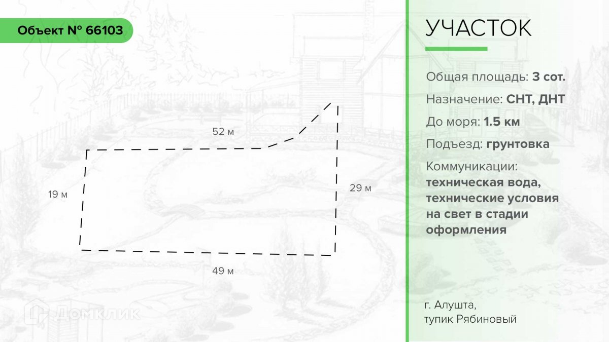Участок в СНТ, 3 сот. на продажу в Алуште, Рябиновый тупик, 1
