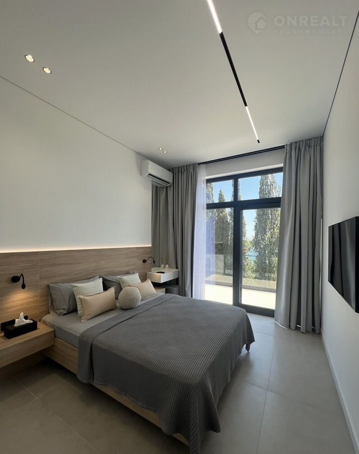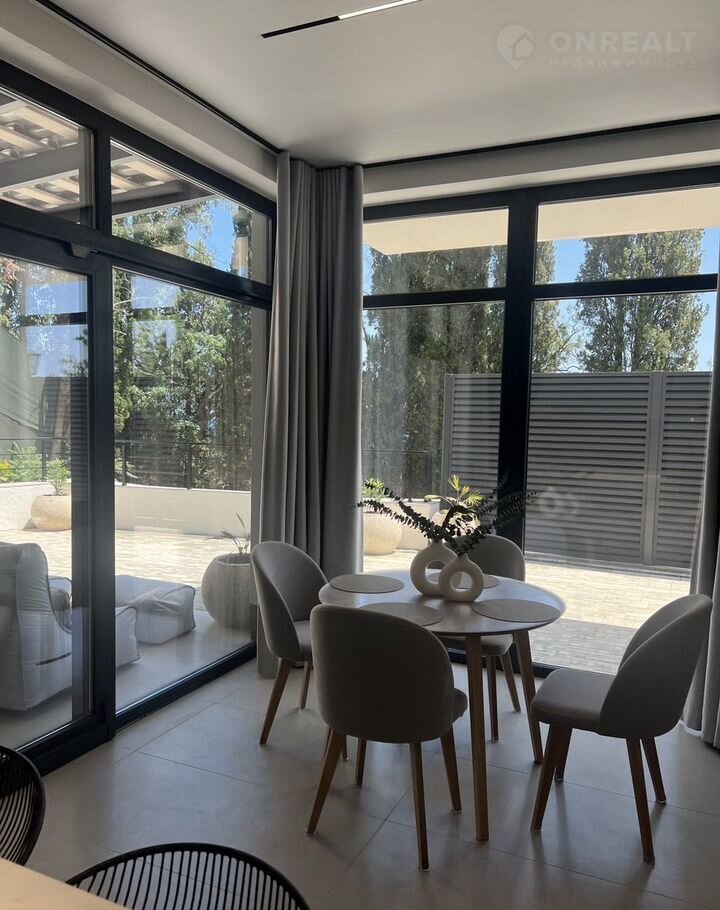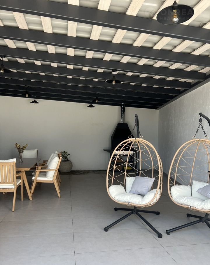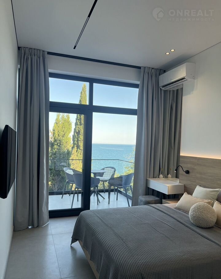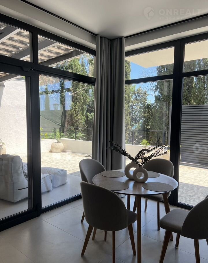 - из кухни-студии - выход на большую террасу с потрясающим видом на море, где размещена обеденная мебель на 8 посадочных мест, стол, мангал, два мягких шезлонга, две качели.