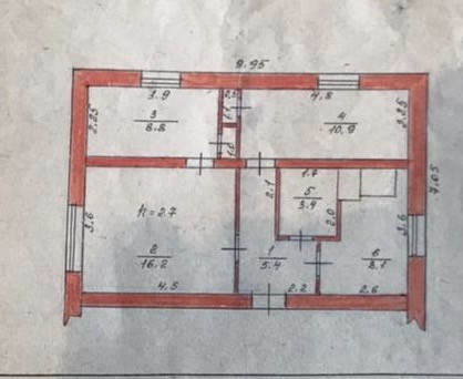 3-комнатная квартира, 54 м2, этаж 1 / 2, на продажу в Алзамае, Первомайская улица, 80