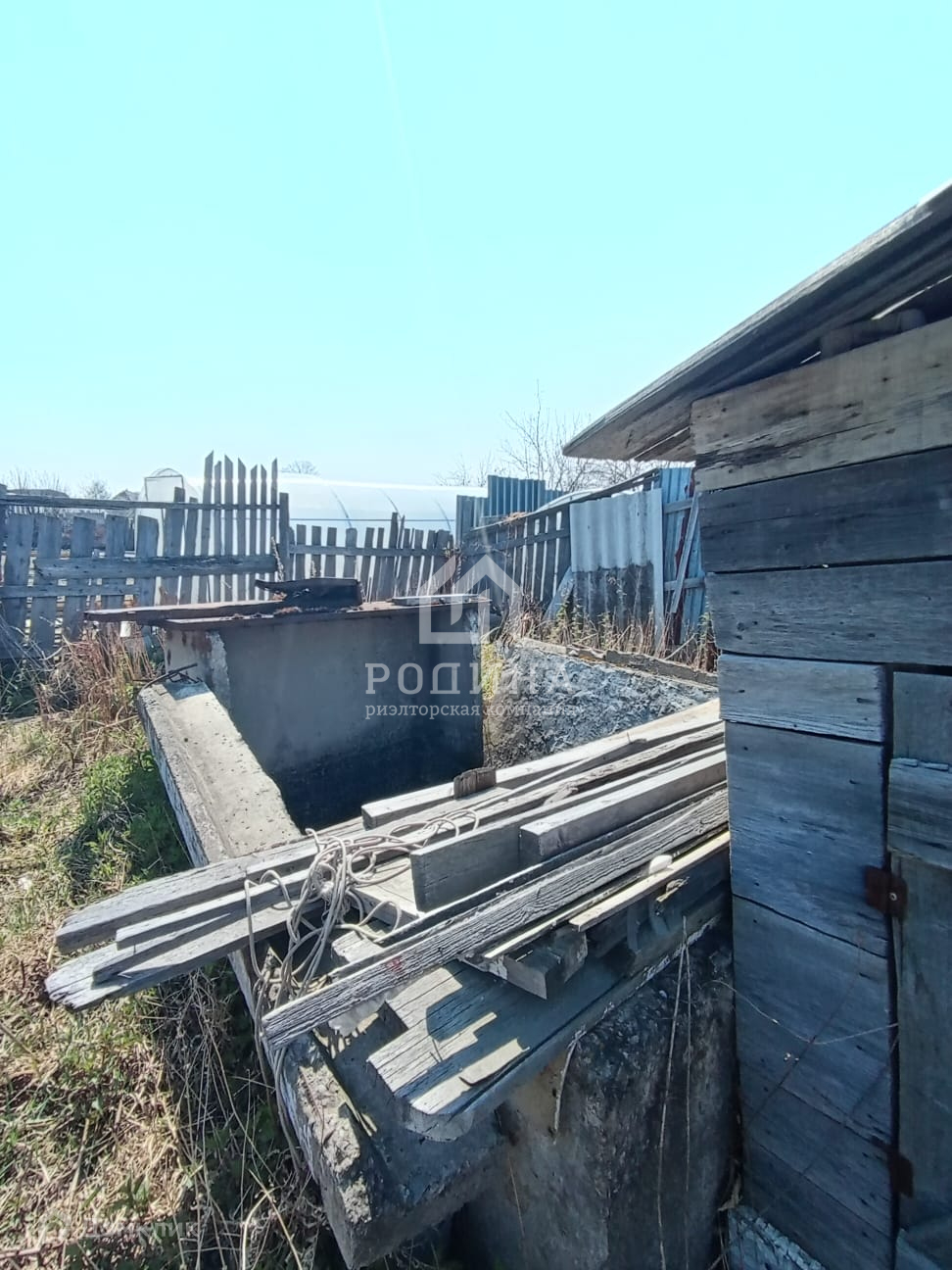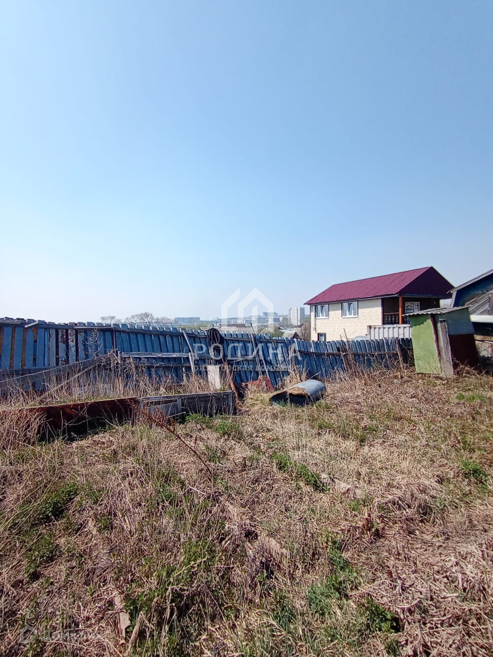 Участок огорожен железным забором.