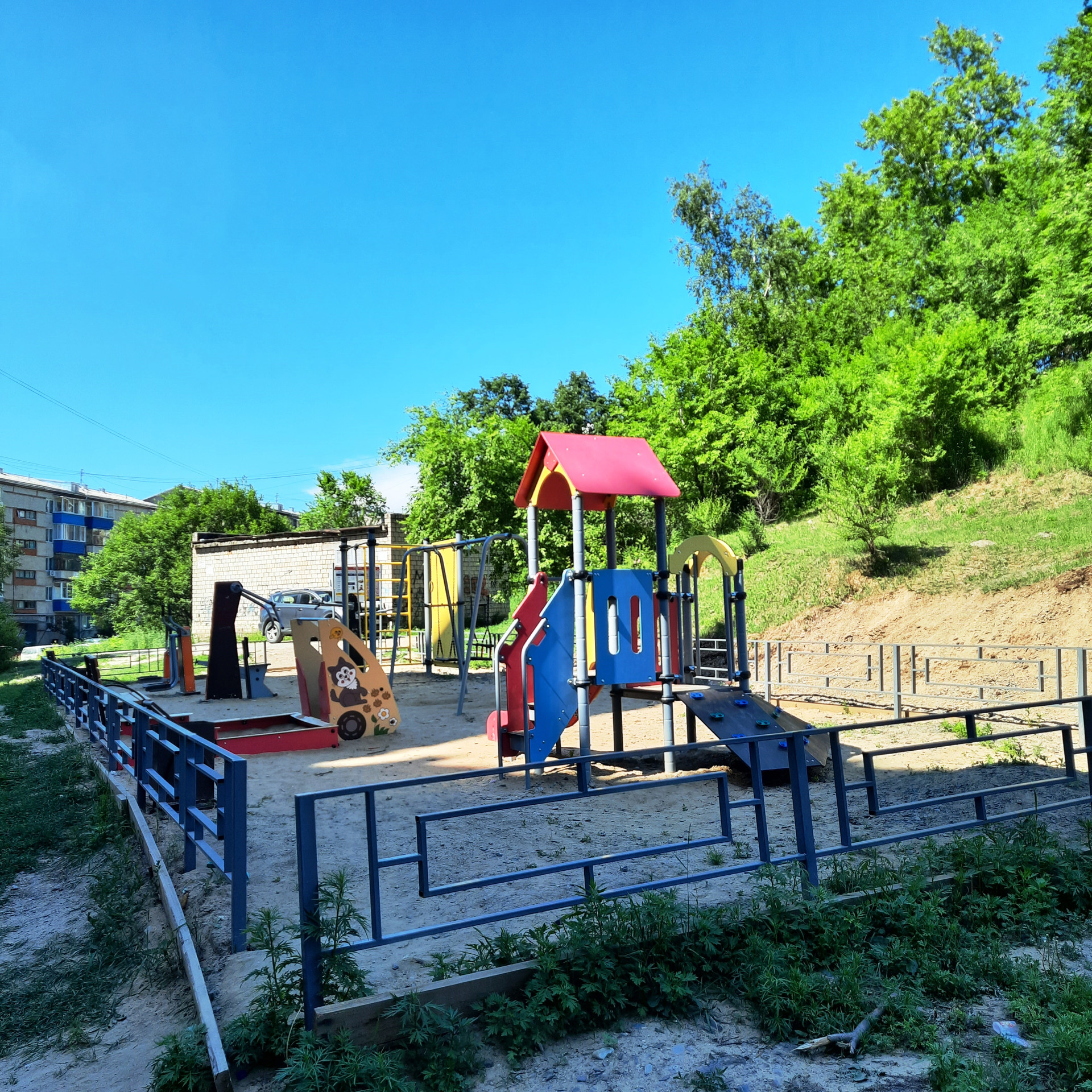 Рядом с домом: детская площадка, школа и детский сад, популярные магазины ("Амбар", ТЦ "Северный"), почтовое отделение, поликлиника, частный сектор, остановки автобусов в разных направлениях.