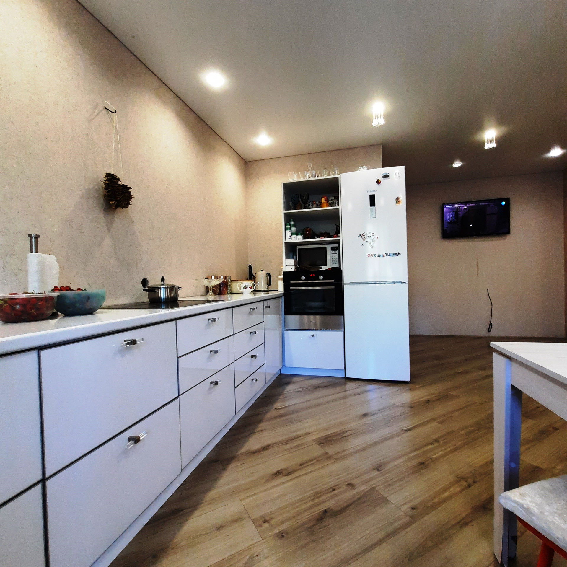Для комфортного проживания нового владельца, остаётся современный кухонный гарнитур, стол, диван, двухспальная кровать, большие зеркала, кондиционер, водонагреватель.