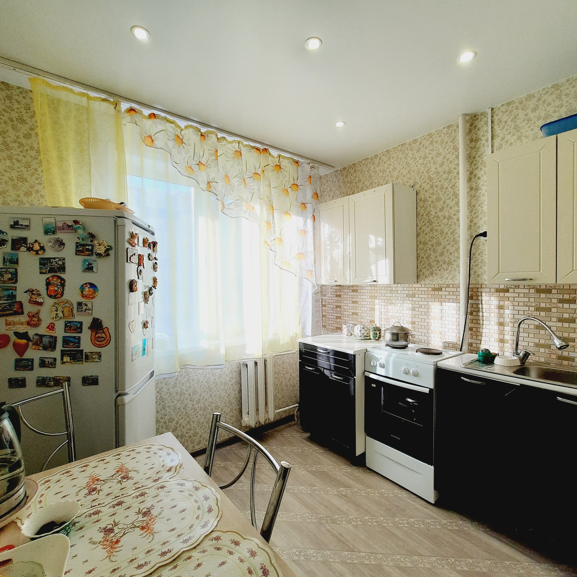 Остаётся всё и в отличном состоянии: кухонный гарнитур, обеденный стол и стулья, зеркальный шкаф-купе, диван, комод, журнальный столик, прихожая, двухкамерный холодильник, стиральная машина-автомат