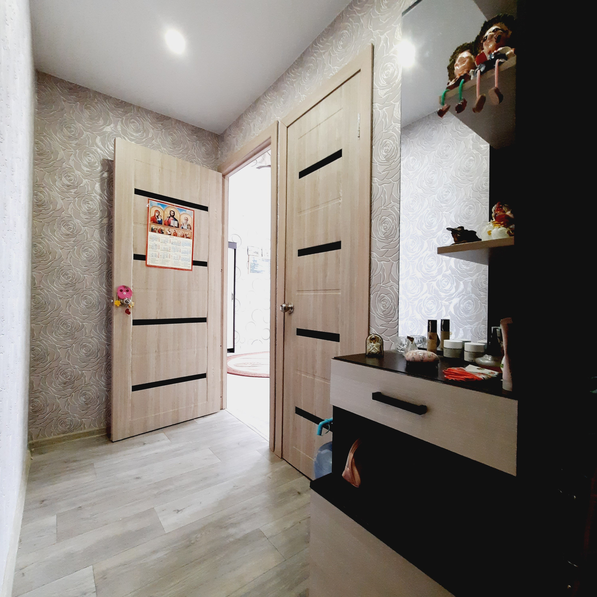 - стены выровнены, свежие обои