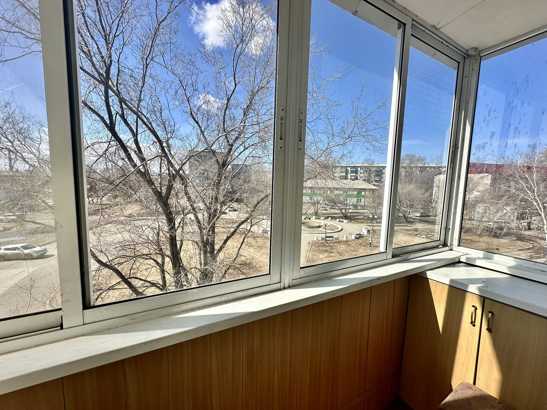 Окна пластиковые, балкон остеклен современными рамами-купе.