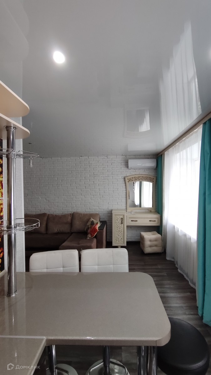 В квартире перепланировка (документы имеются). Установлены окна пластик. Дверь входная новая. Хороший ремонт, стены выровнены, натяжные потолки во всей квартире, на полу везде линолеум, межкомнатные двери.  Большой совмещенный санузел, пол и стены отделаны кафельной плиткой. Остаётся мебель, которую вы видите на фото. Установлен кондиционер в гостиной. Подключены интернет, кабельное ТВ, домофон.