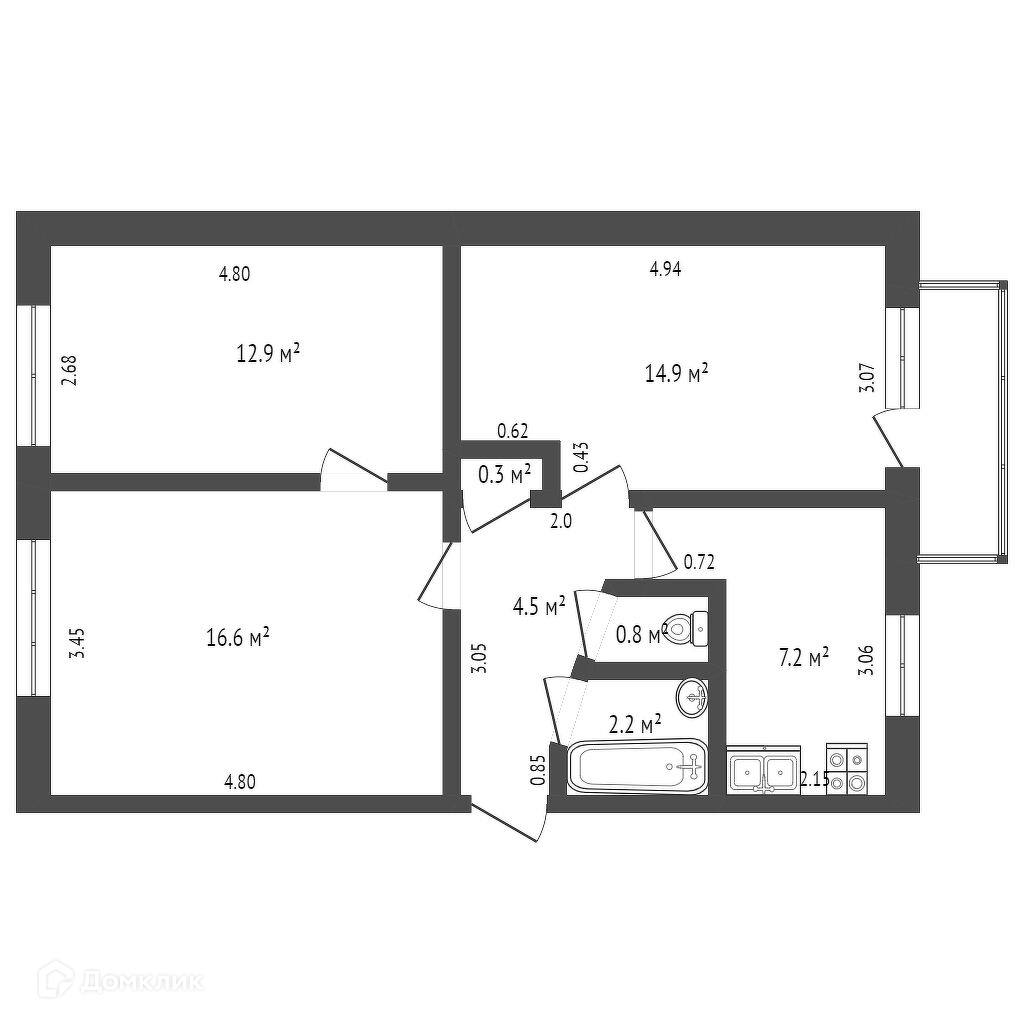 Общая площадь 59.4 м2