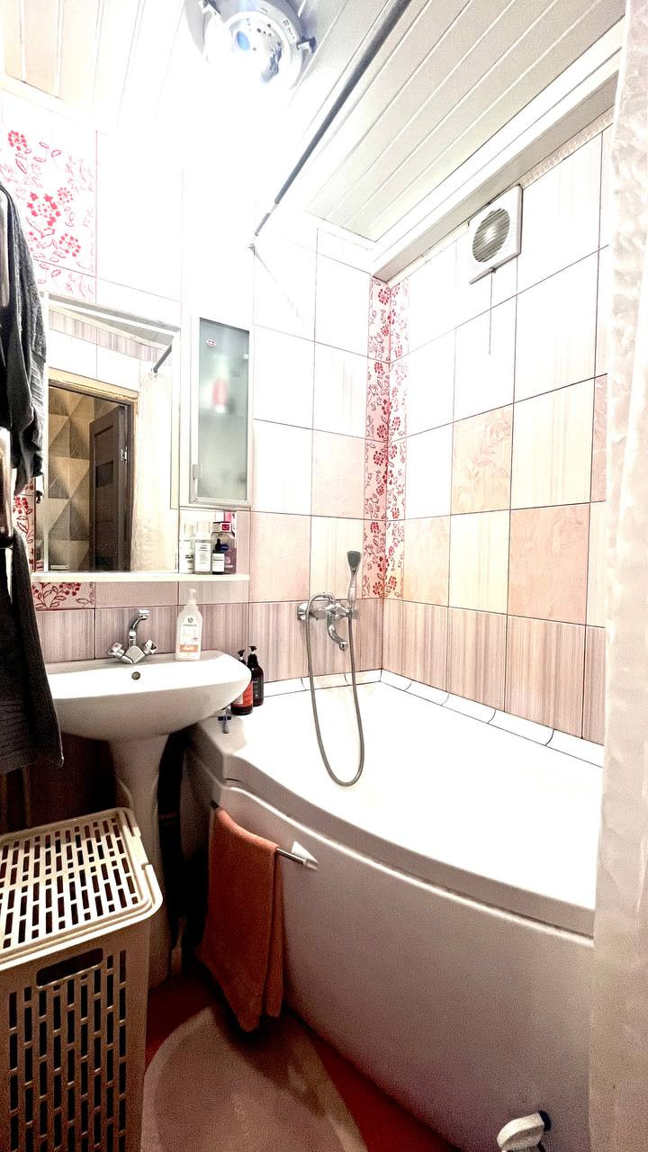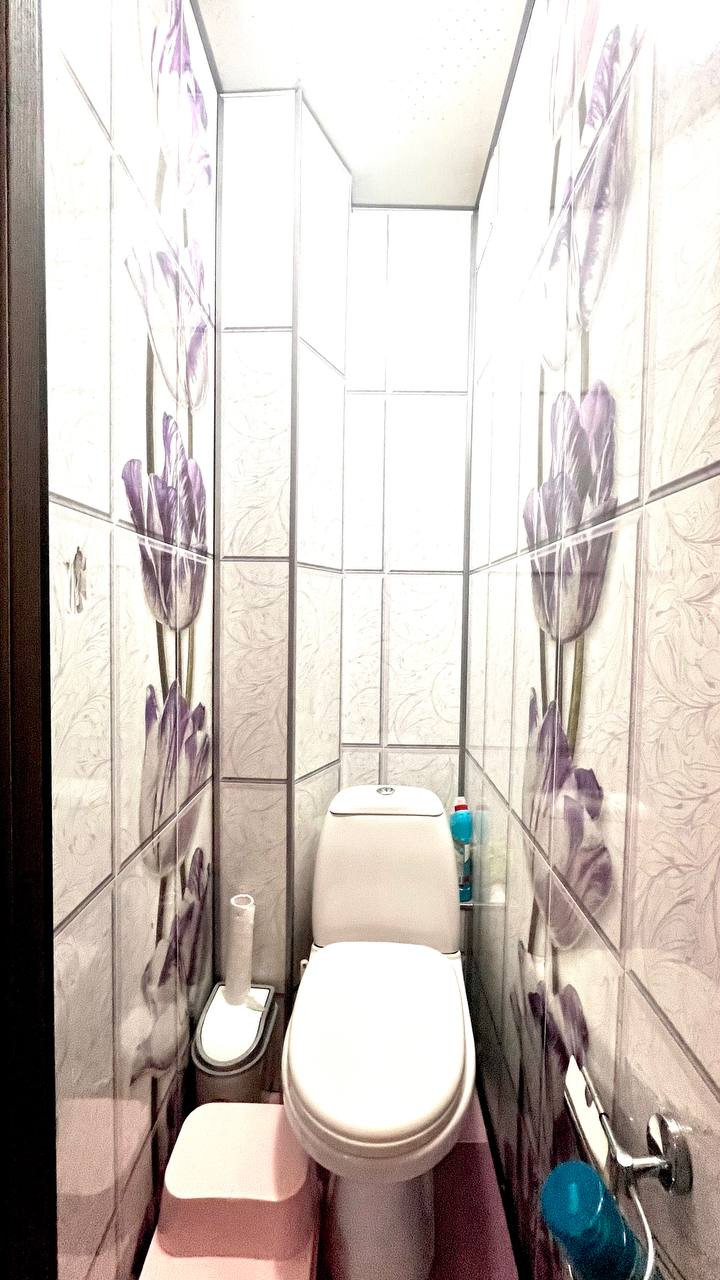 Ванная комната и туалет отделаны керамической плиткой, заменены трубы на ПВХ, стоят счетчики.