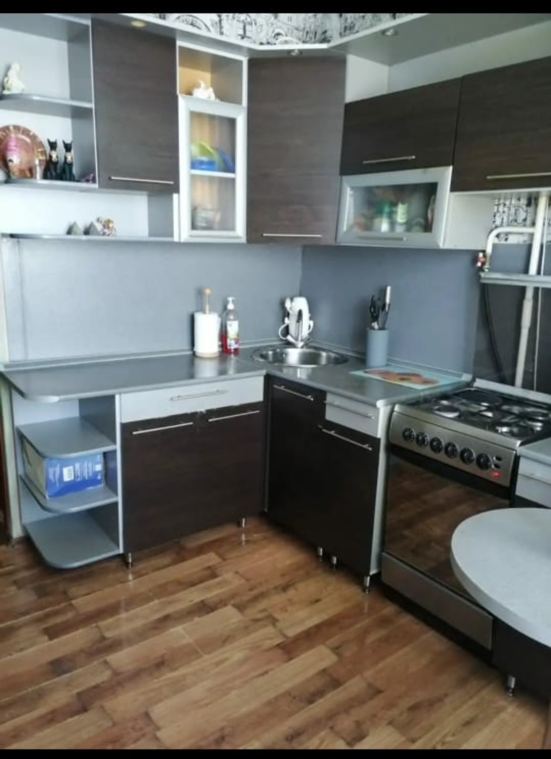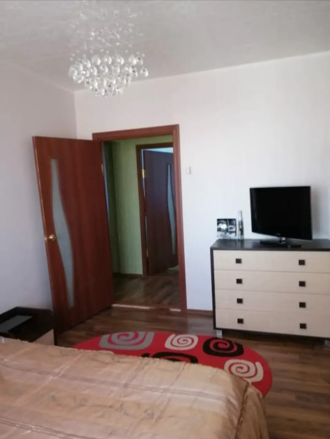 В квартире остаётся  мебель и бытовая техника (кухонный гарнитур и кух.стол со стульями,  диваны, кровать, встроенный шкаф, холодильник, стиральная машинка, телевизор).   Квартира очень уютная, солнечная, теплая. Хорошие соседи, чистый подъезд