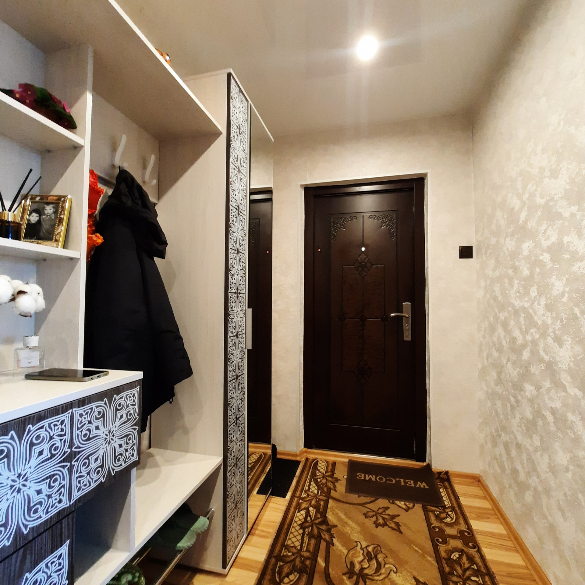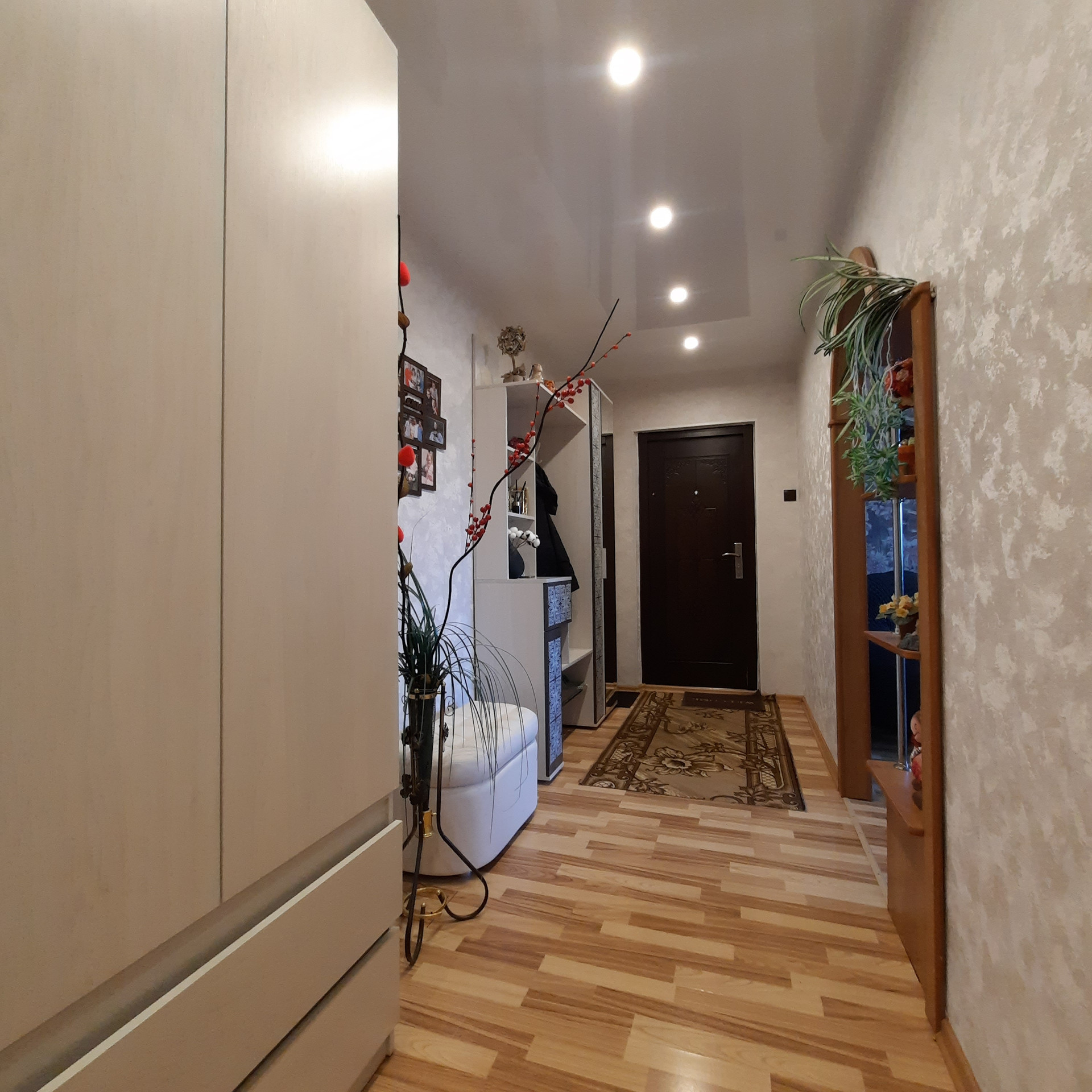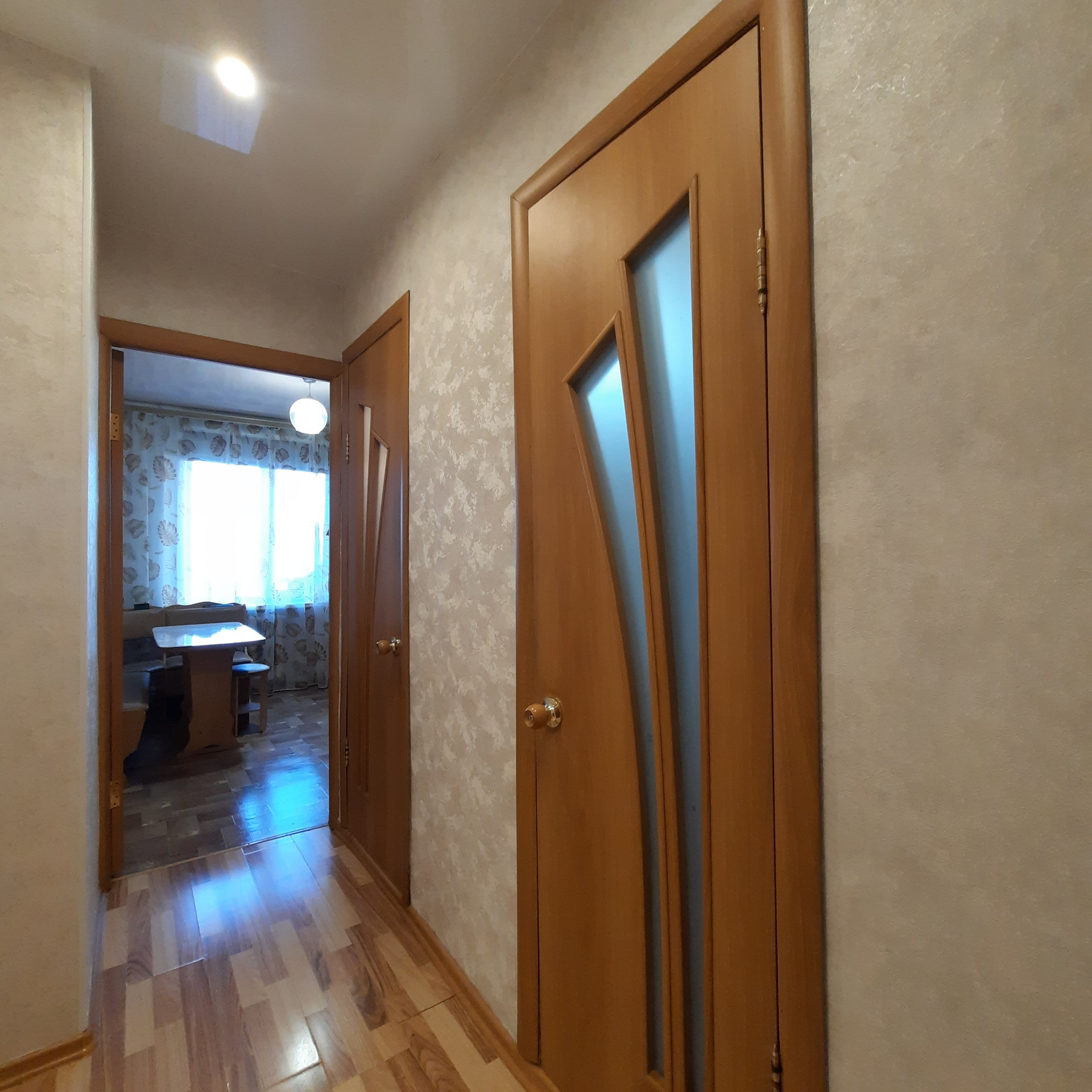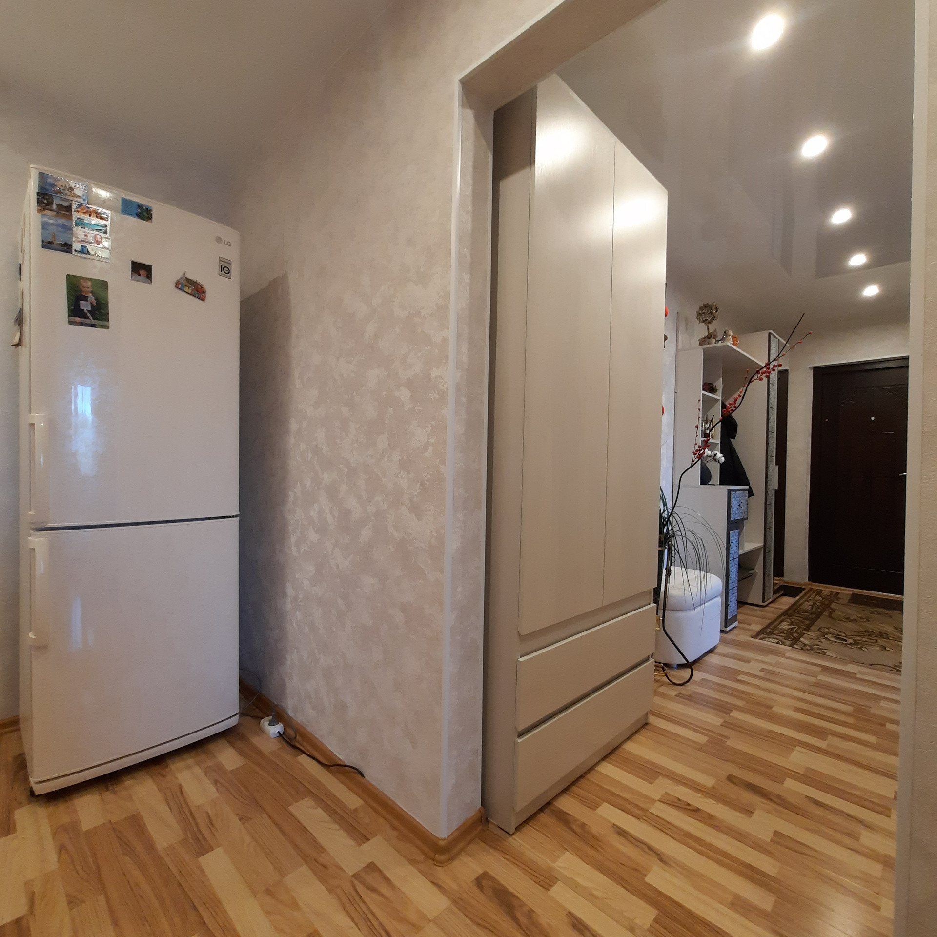- натяжные потолки, ламинат, декоративная арка, заменены межкомнатные двери