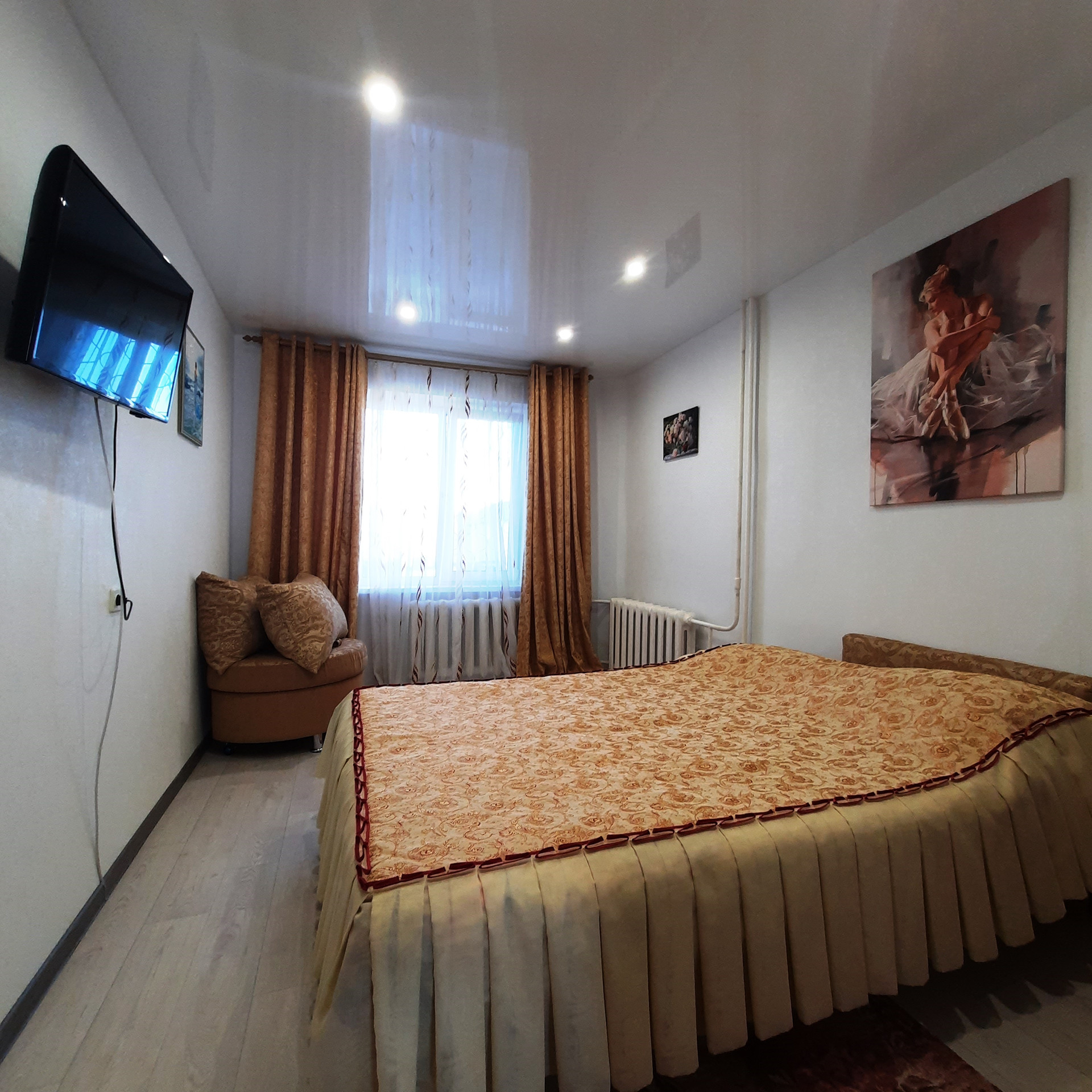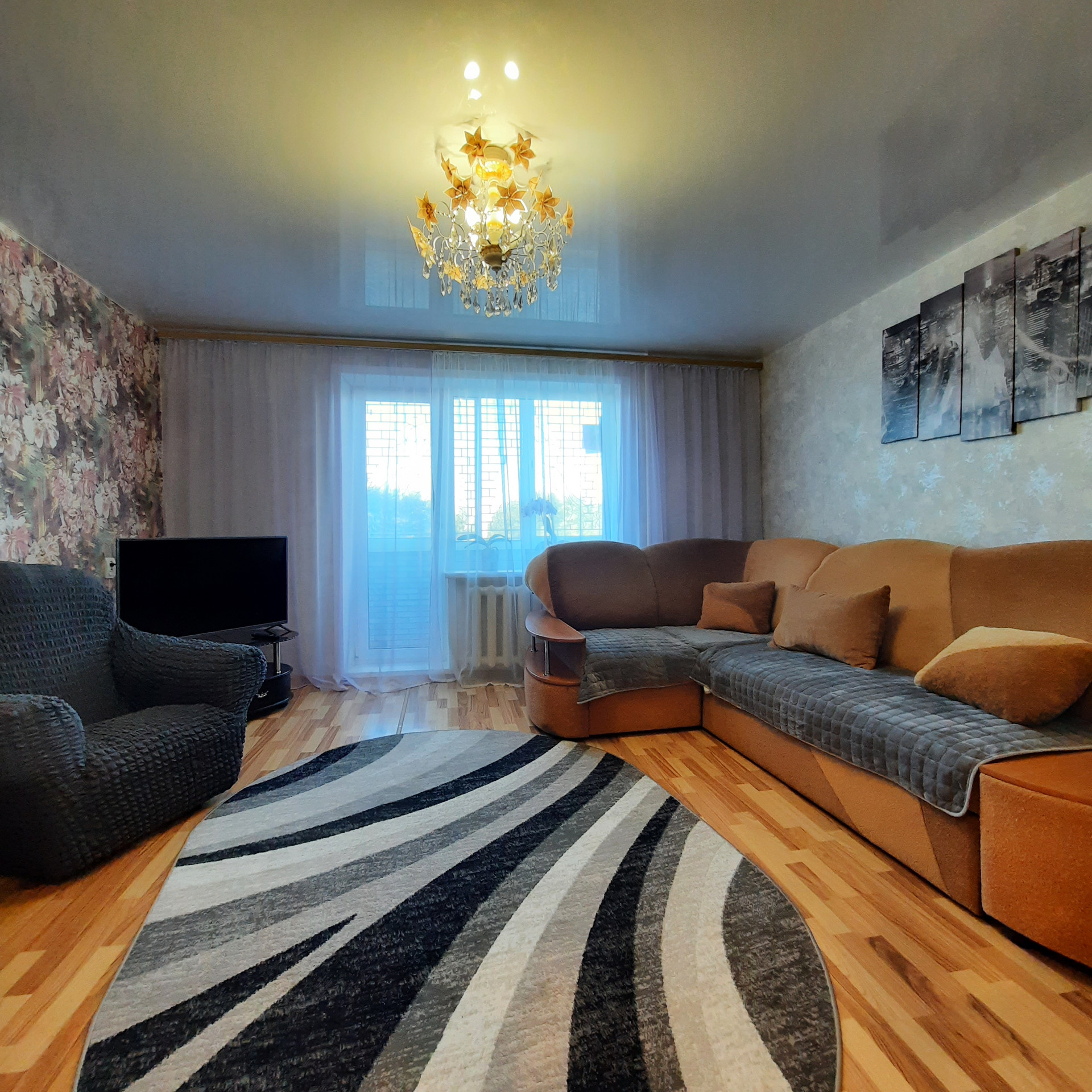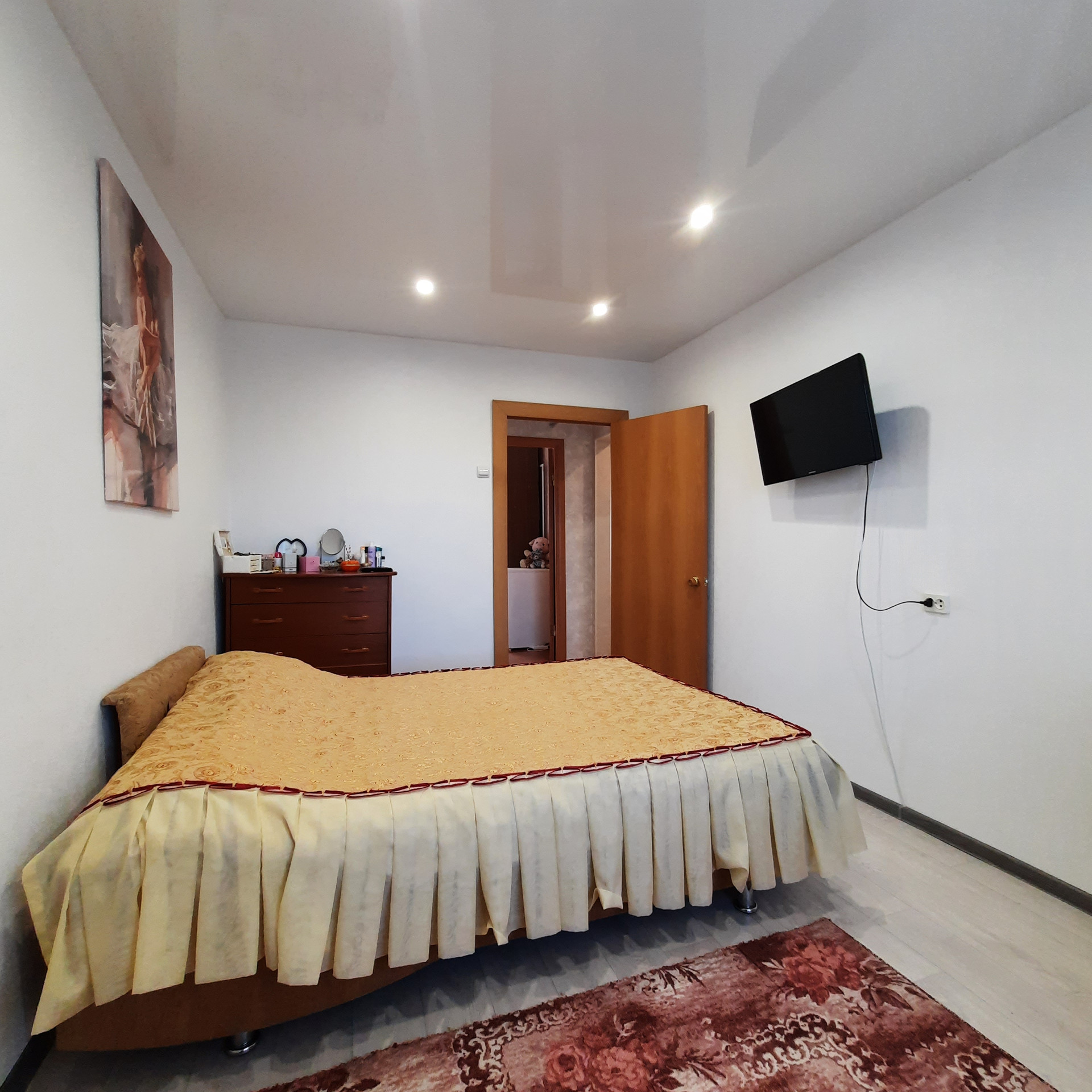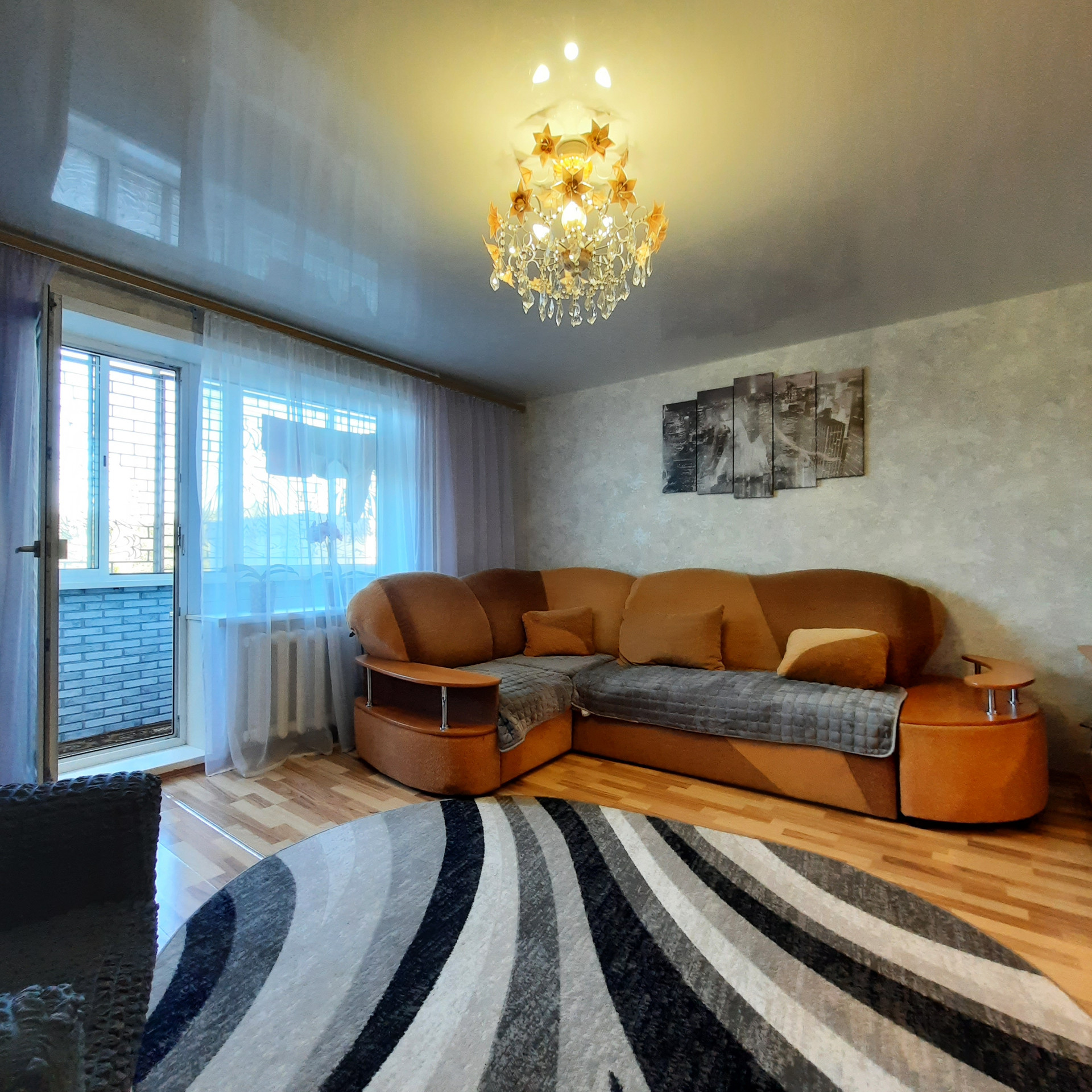 - натяжные потолки, ламинат, декоративная арка, заменены межкомнатные двери
