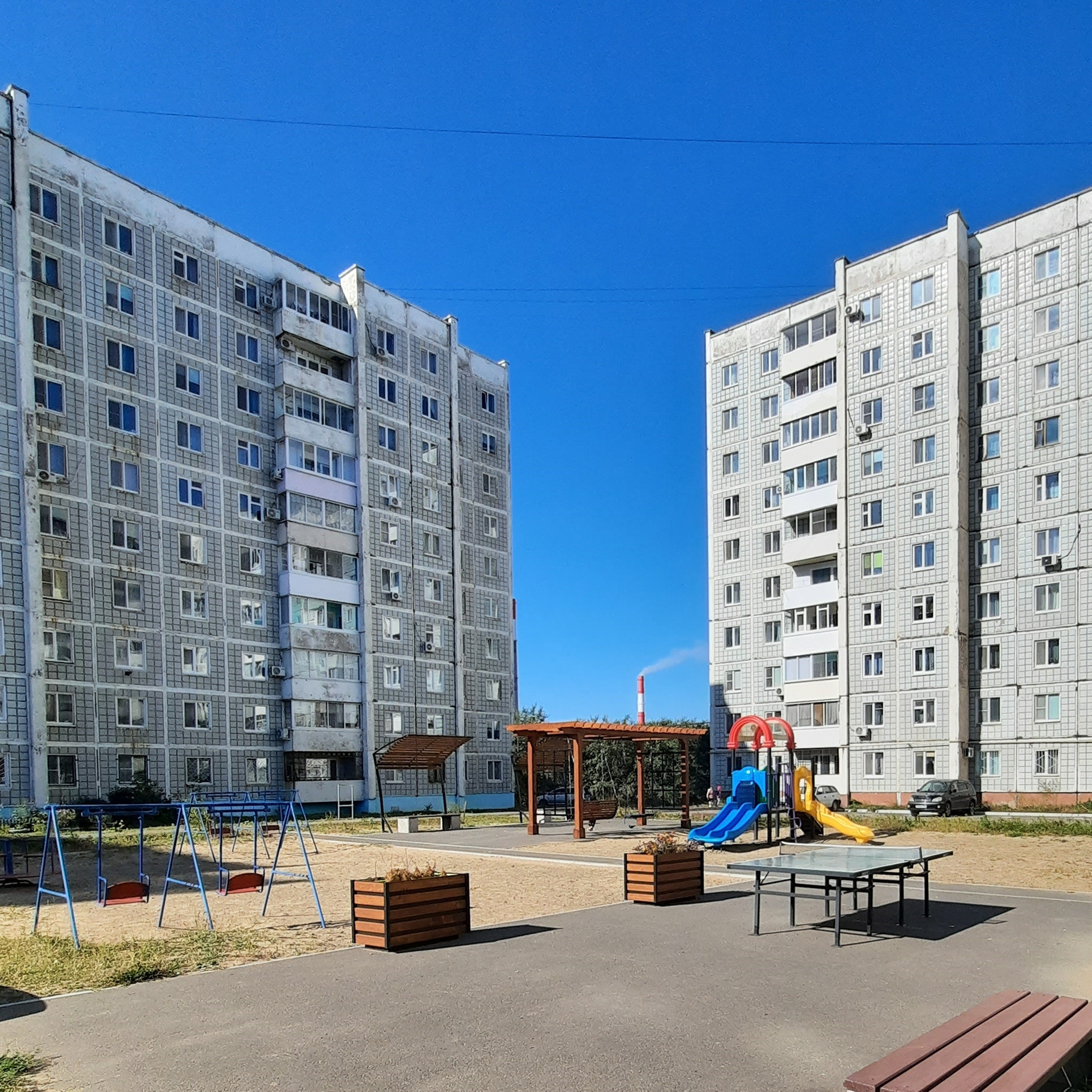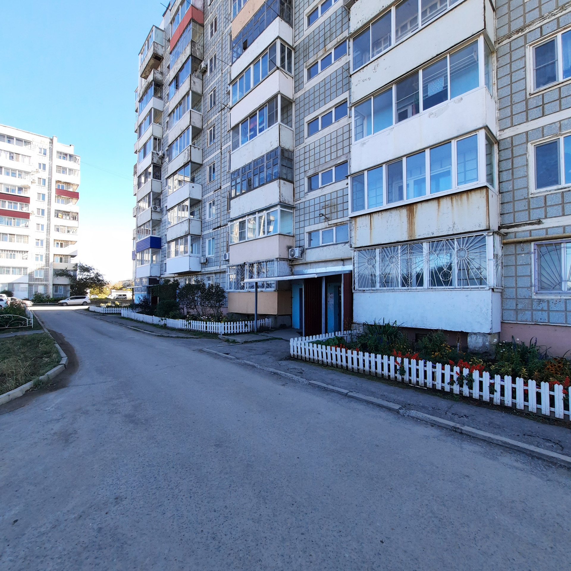 Рядом: дворовая территория с ухоженным палисадником, детская площадка, школа и детский сад, большая спортивная площадка и стадион, Дворец спорта с тренажёрным залом и бассейном, прогулочная зона Ботанического сада, популярные магазины (в т.ч. "Пятёрочка", "Самбери", "Светофор"), новая набережная р. Амур, остановки автобусов, Автовокзал