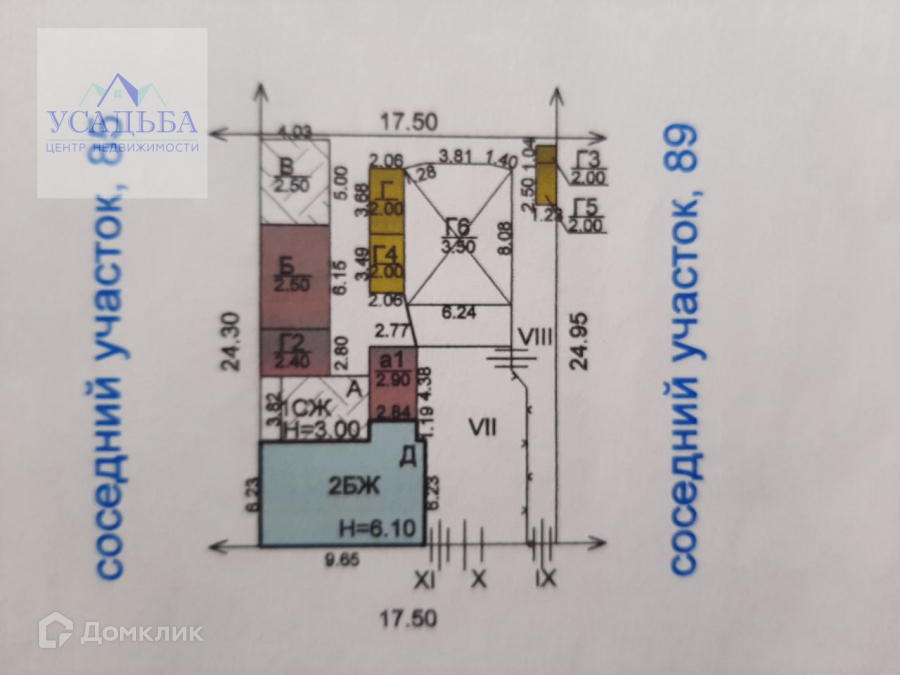 Площадь земельного участка 2,1 сотки (долевая собственность). Участок с узким фасадом Г образной формы.