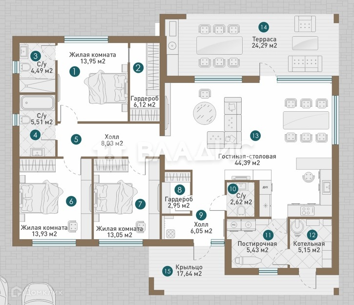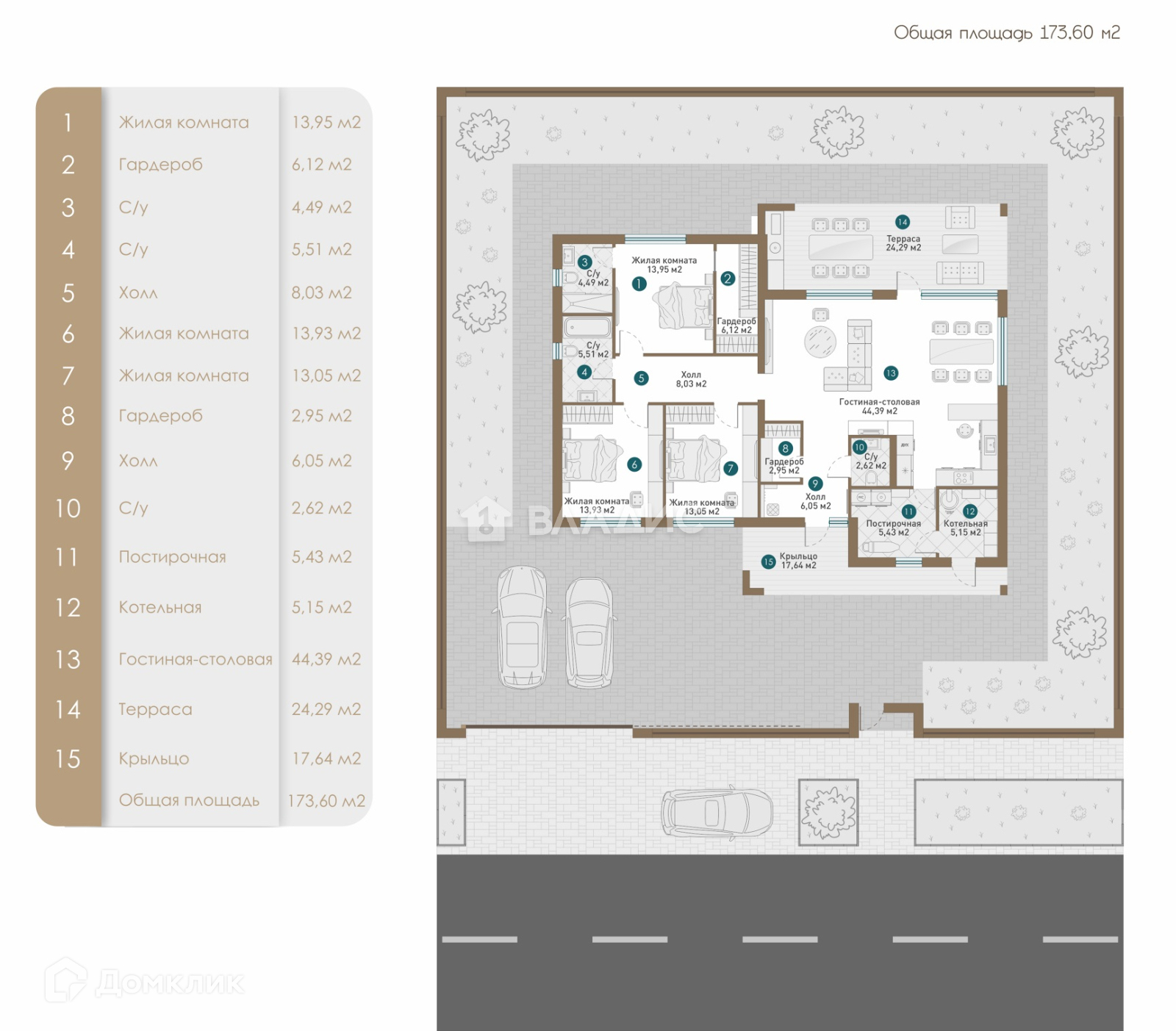 ● Общая площадь - 173,61кв.м