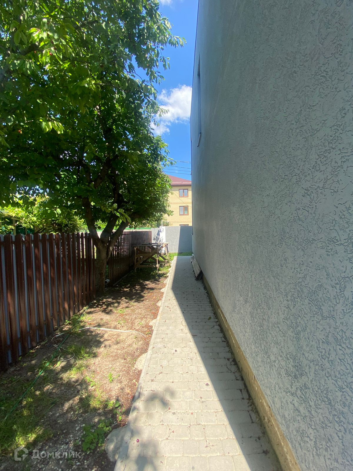 Участок ровный, правильной формы, огорожен, двор и парковка выложены тротуарной плиткой.