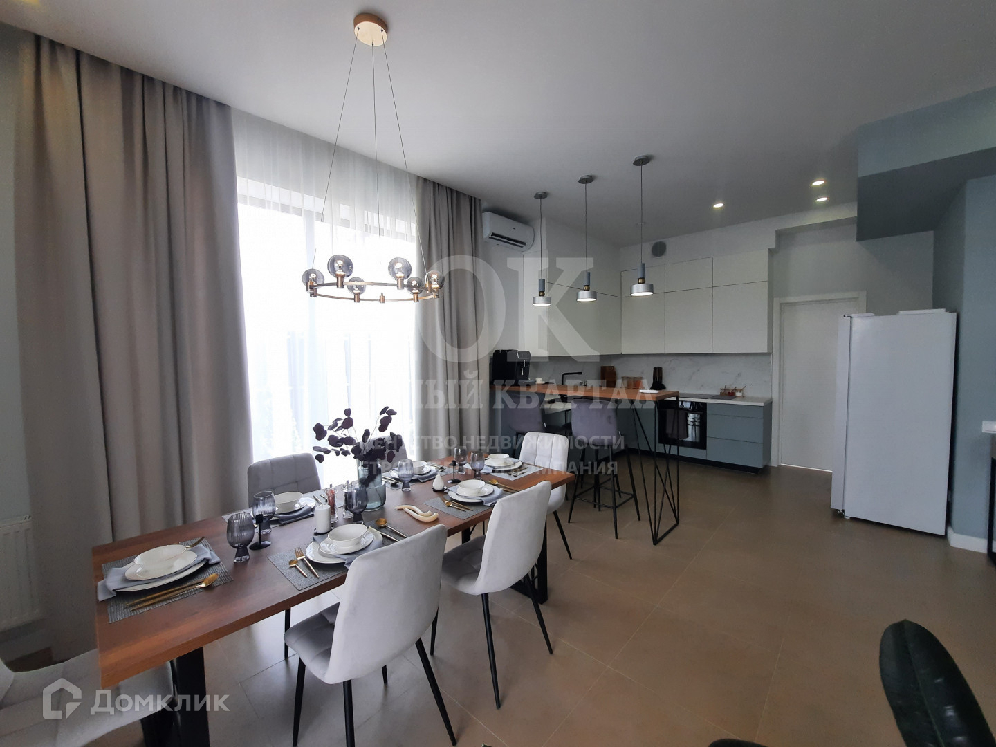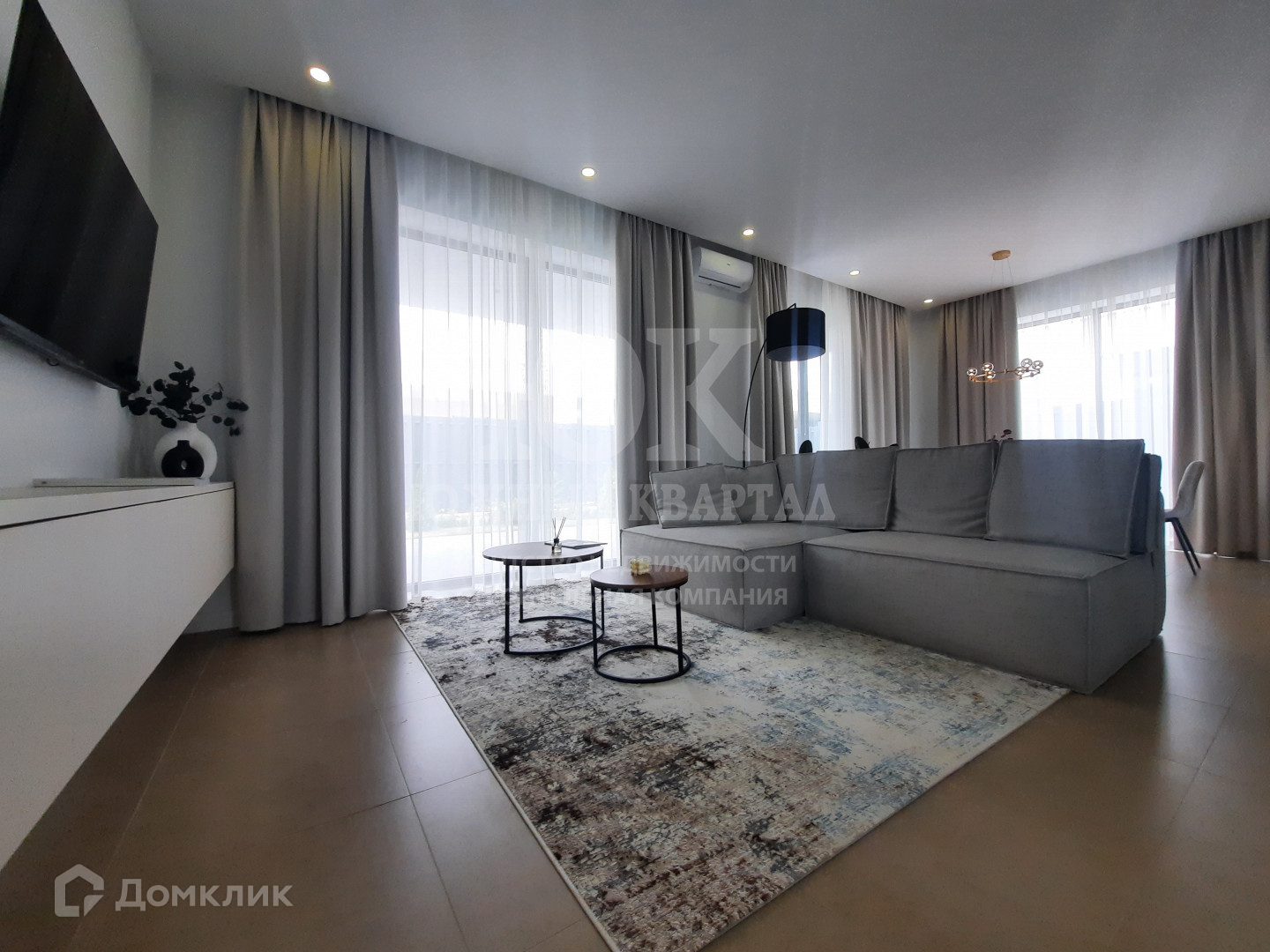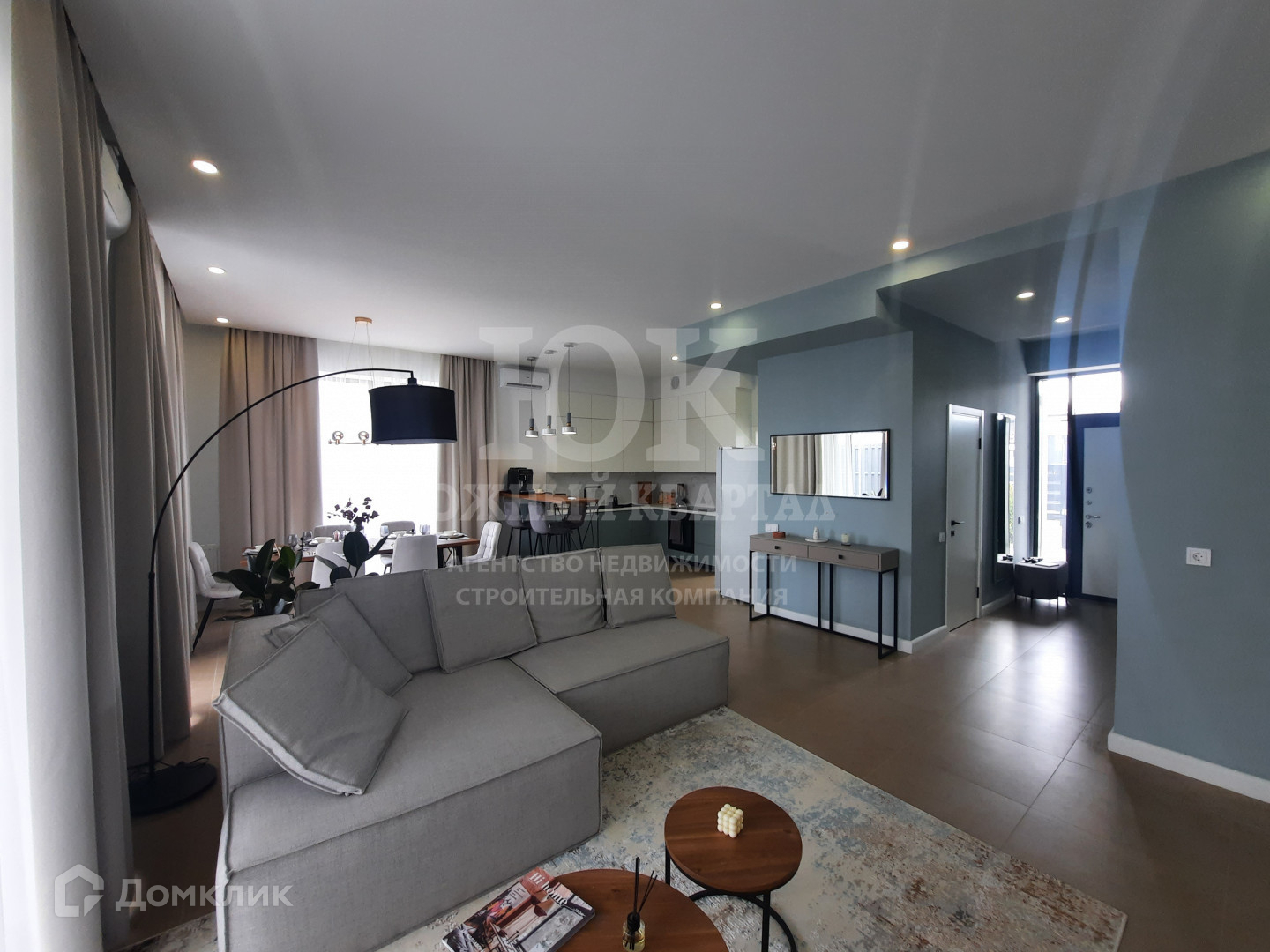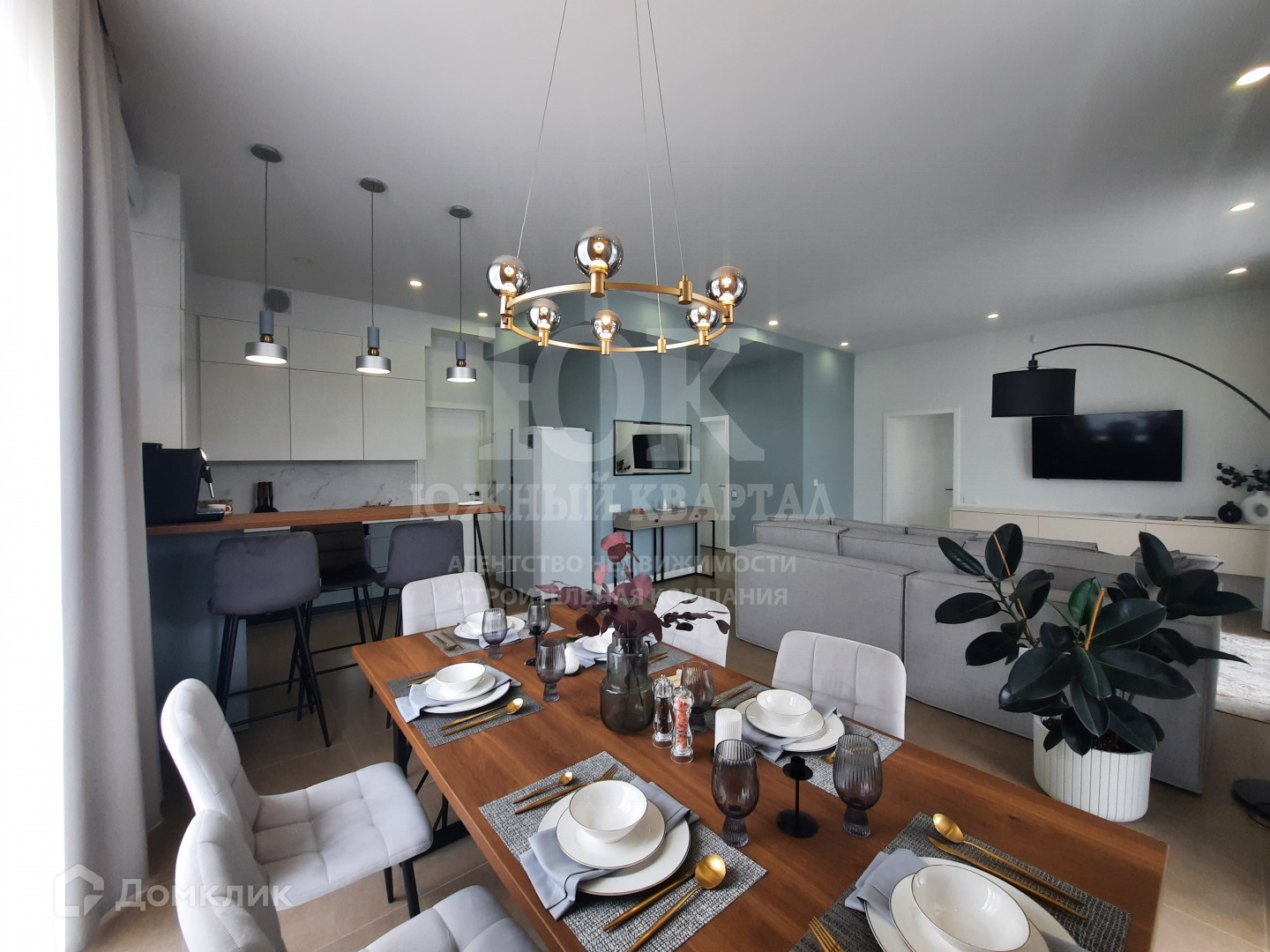 - Просторная гостиная, объединенная с кухней и столовой