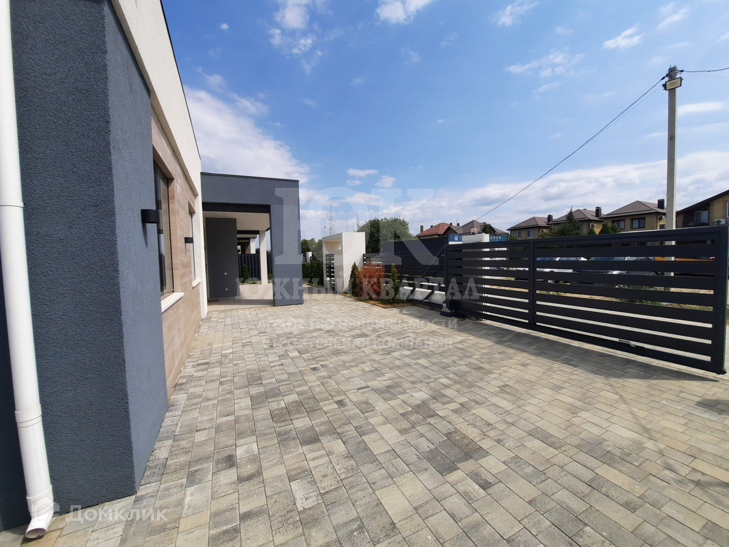 - Вокруг дома и в зоне стоянки автомобиля постелена брусчатка и произведено озеленение