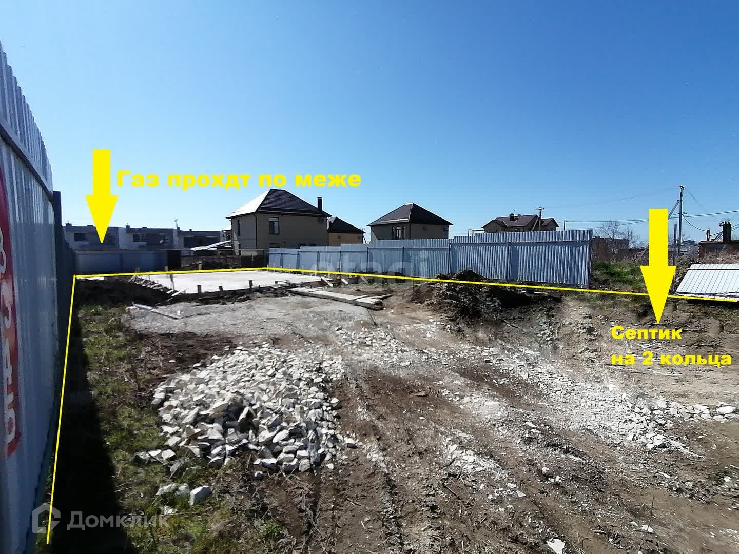 Коммуникации: электричество - 15 кВт, вода - есть уже согласование и первоначальный платеж по присоединению к водоснабжению, канализация - уже сделан септик на 2 кольца, газ проходит по меже.