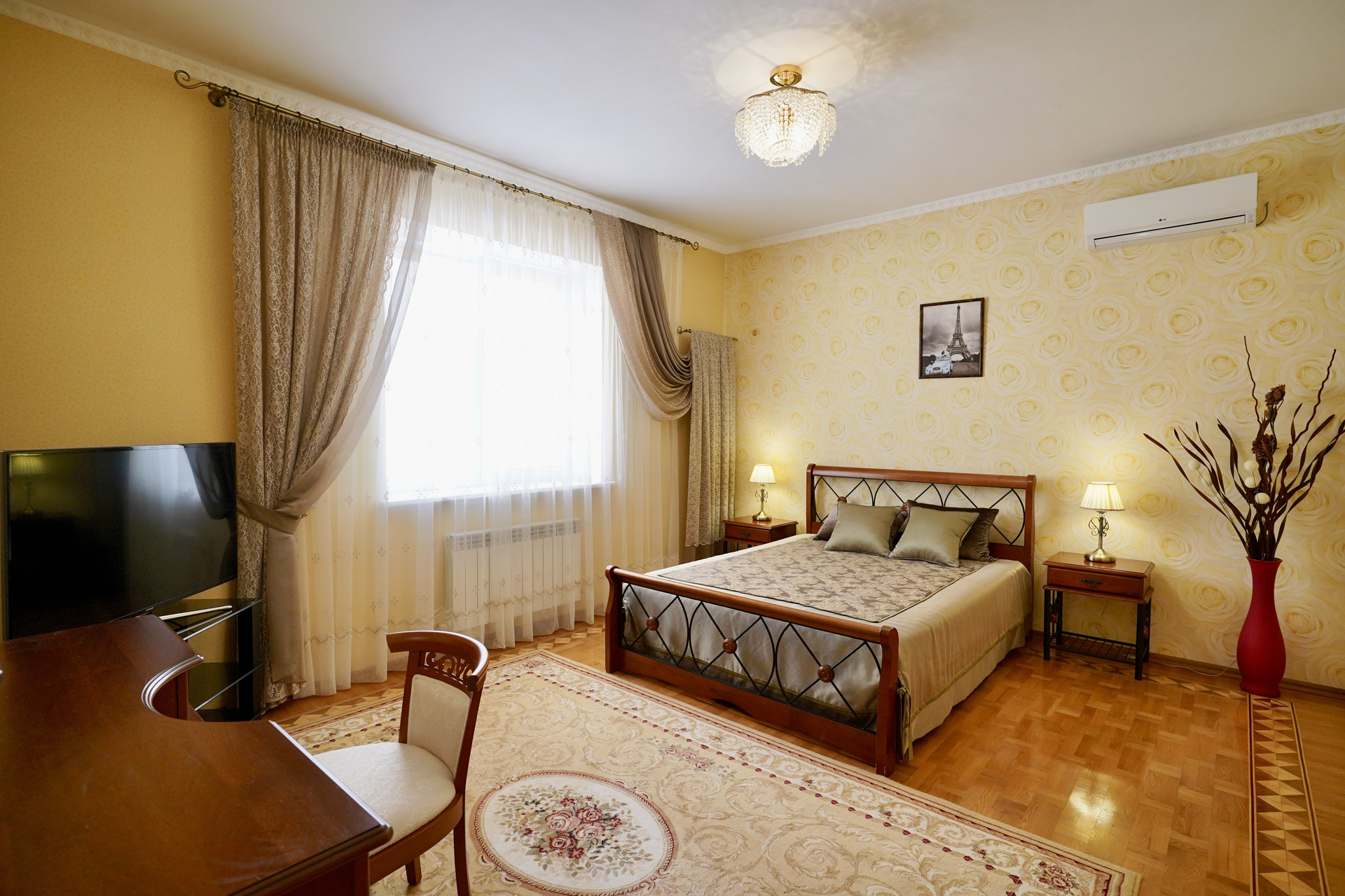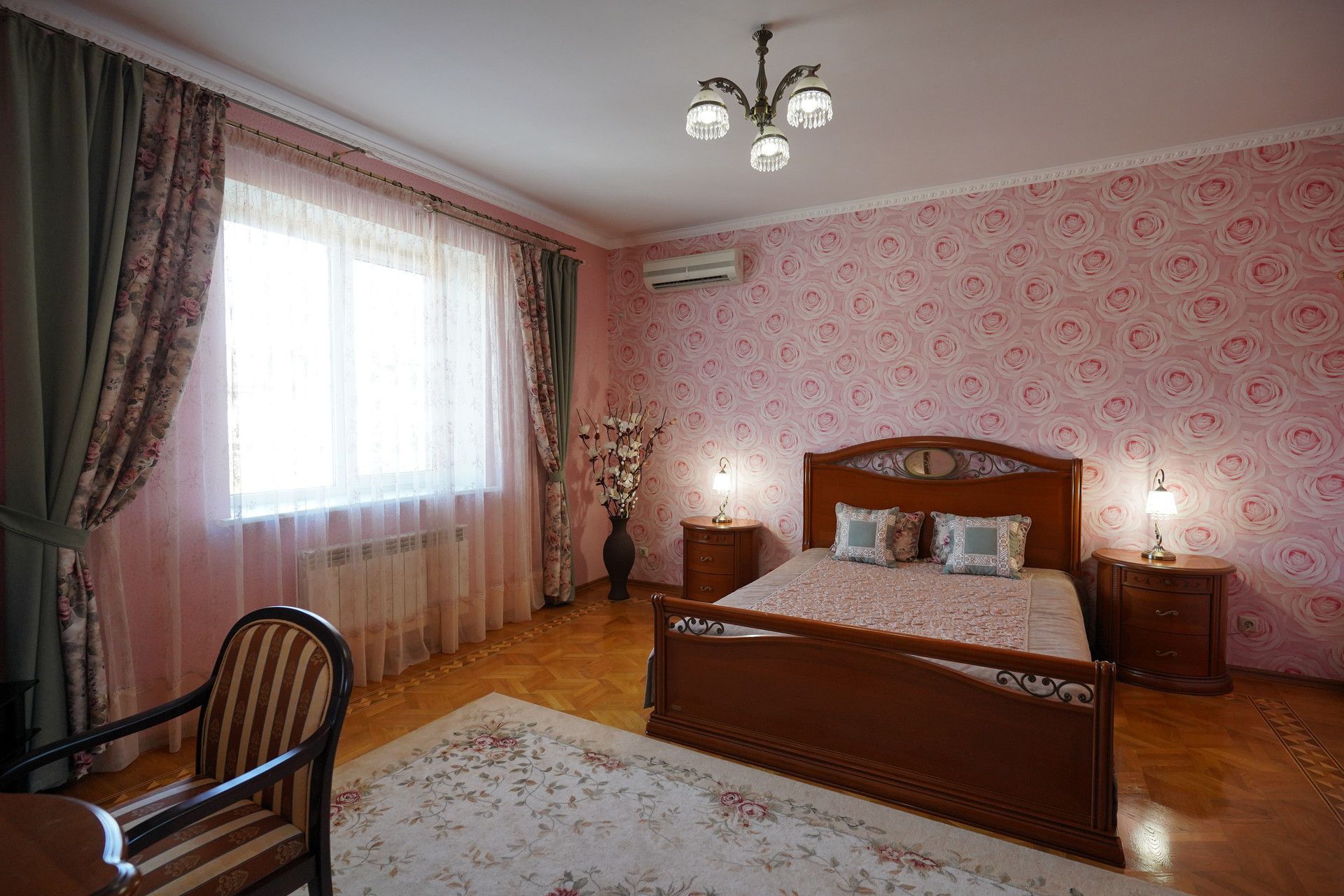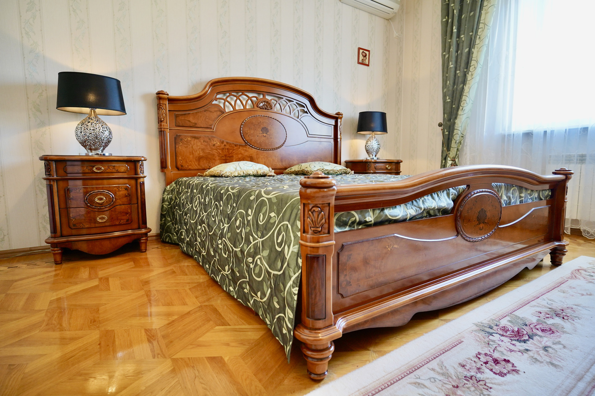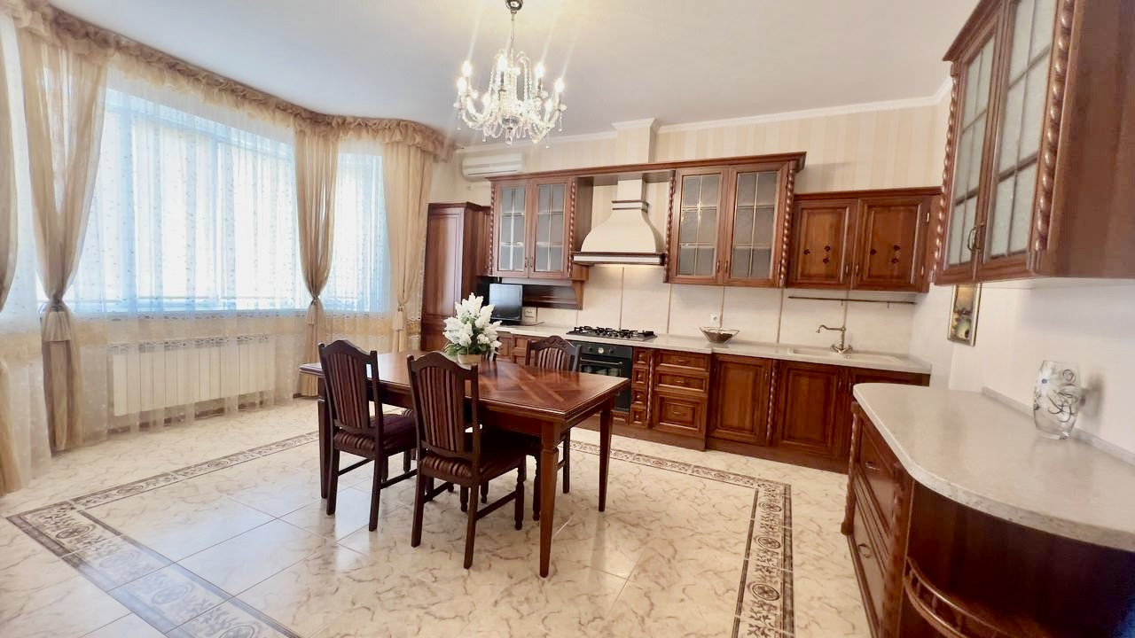 Вся мебель из натурального дерева доставлена из Италии. В каждом помещении установлены кондиционеры Whirpool, Люстры и бра - Bohemia. Диваны и кресла - натуральная кожа. Мебель и техника при продаже остаются. По всему периметру участка установлено видеонаблюдение.