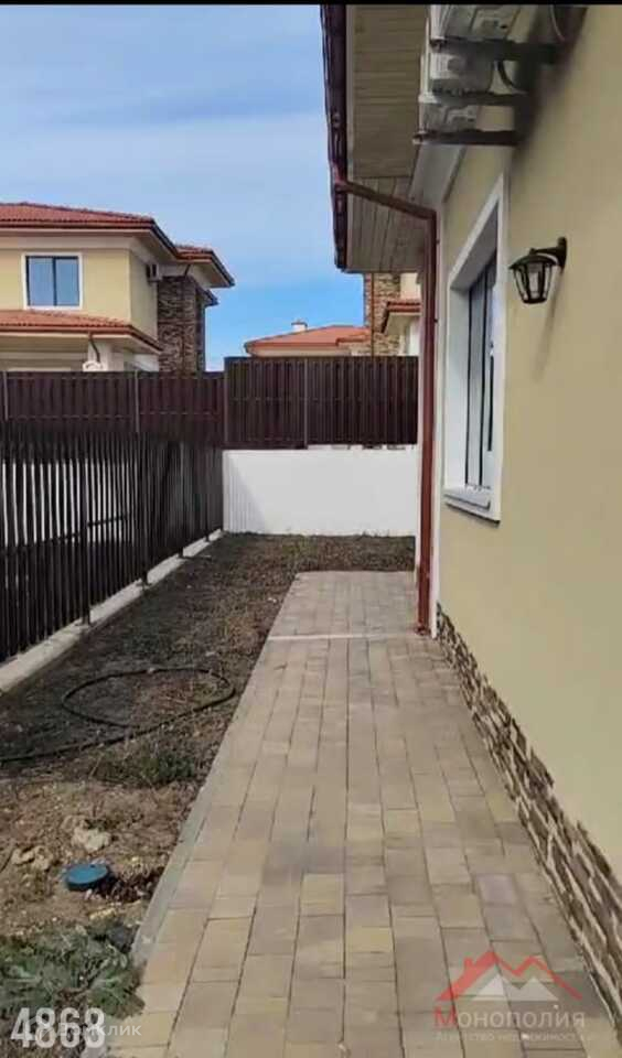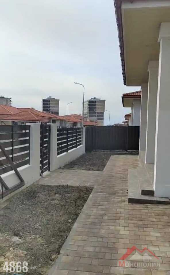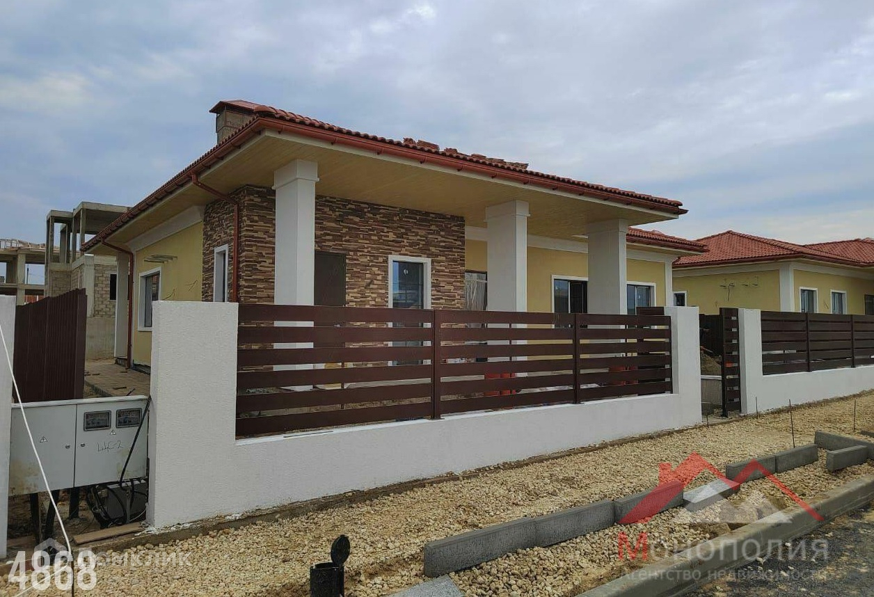 Одноэтажный, дом в закрытом коттеджном поселке Анапы. До моря 20 минут пешком  . Внутри асфальтированные дороги, вид на море прямо с асфальта. Дом полностью в предчистовой отделке  !!! Установлен газовый котел и подведены теплые полы. Установлены радиаторы отопления.   .Дом построен из керамзитобетонного блока , фундамент ленточный ,потолок плита перекрытия, Крыша скатная из глиняной черепицы. Фасад: декоративная штукатурка и камень.  В доме центральные коммуникации: газ,вода,канализация. Электричество 15 квт -3 фазы.Площадь дома 173,9 кв.м. 3 входа. Установлены входные двери . Большая гостиная 42,5 кв.м. Отдельно место для котельной и место для установки стиральной машины. 3 спальни ,в хозяйской 13,95 кв.м. свой сан узел и гардеробная. В доме 2 гардеробных и 3 сан узла. Большая летняя веранда.Участок 6 соток, есть место для установки бассейна и детской зоны. Есть парковка : место для стоянки 2-х авто. По периметру забор, установлена калитка.откатные ворота . По периметру дома ,уложена плитка. Звоните!!