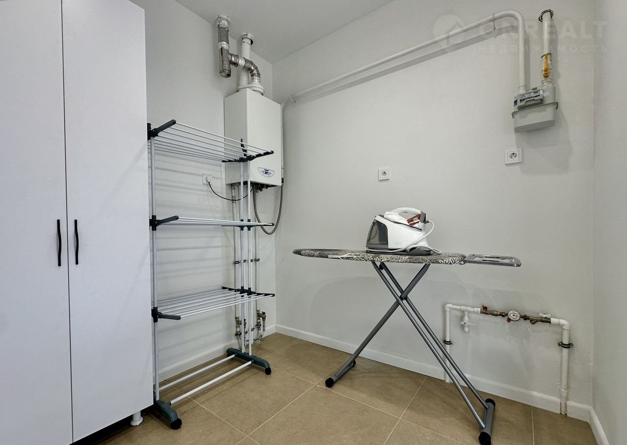 - просторная прихожая, оборудованная гардеробная для верхней одежды, гостевой санузел, кухня - гостиная общей площадью 42 кв.м. с выходом на крытую террасу с зоной отдыха, выделенная постирочная комната и котельная,