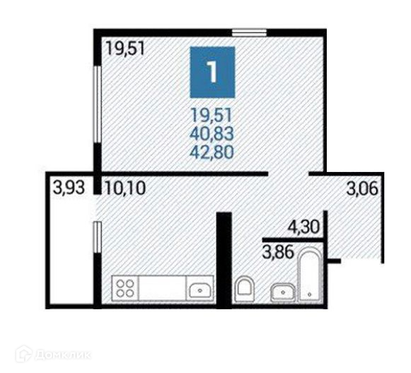 Общая площадь 42 м2