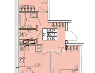 Общая площадь: 77.7 м2