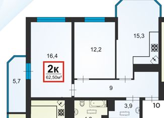 Продается двухкомнатная квартира, 62.1 м2, Анапское шоссе