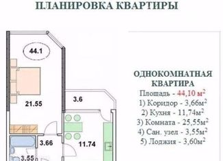 Общая площадь: 44.1 м2