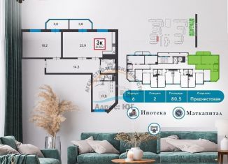 3-комнатная квартира на продажу, 80.5 м2, Анапское шоссе, 32к6