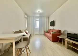 Предлагаю просторную и светлую студию с евроремонтом полностью укомплектованную для проживания. В квартире выделена отдельно зона спальни с диваном, в кухне-гостиной также есть раскладной диван, установлена сплит-система, кухонный гарнитур с встроенной вытяжкой, при продаже всё остаётся кроме телевизора и микроволновки. Общая площадь составляет 34 кв.м... |