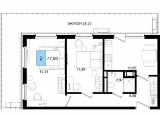 Продам 2-ком. квартиру, 77.9 м2