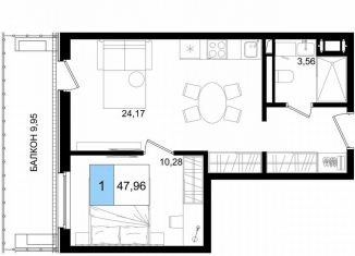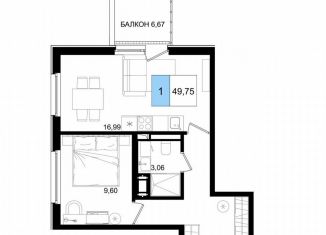 Продается однокомнатная квартира, 49.8 м2