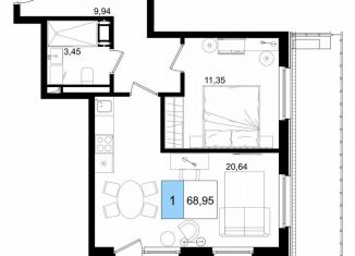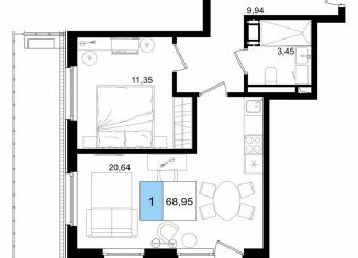 Продается 1-комнатная квартира, 69 м2
