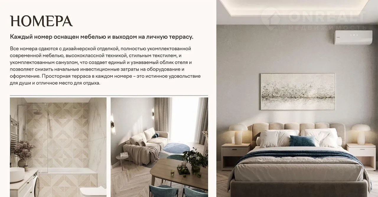 - Годовая загрузка комплекса от 65% благодаря управлению одного из ведущих отельных операторов. Это обеспечит высокую доходность в течение всего года.