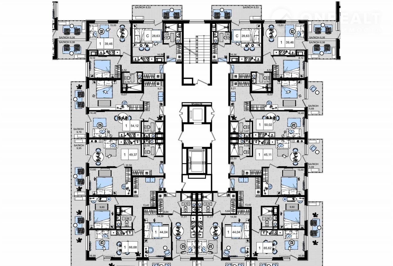 Общая площадь 54.1 м2