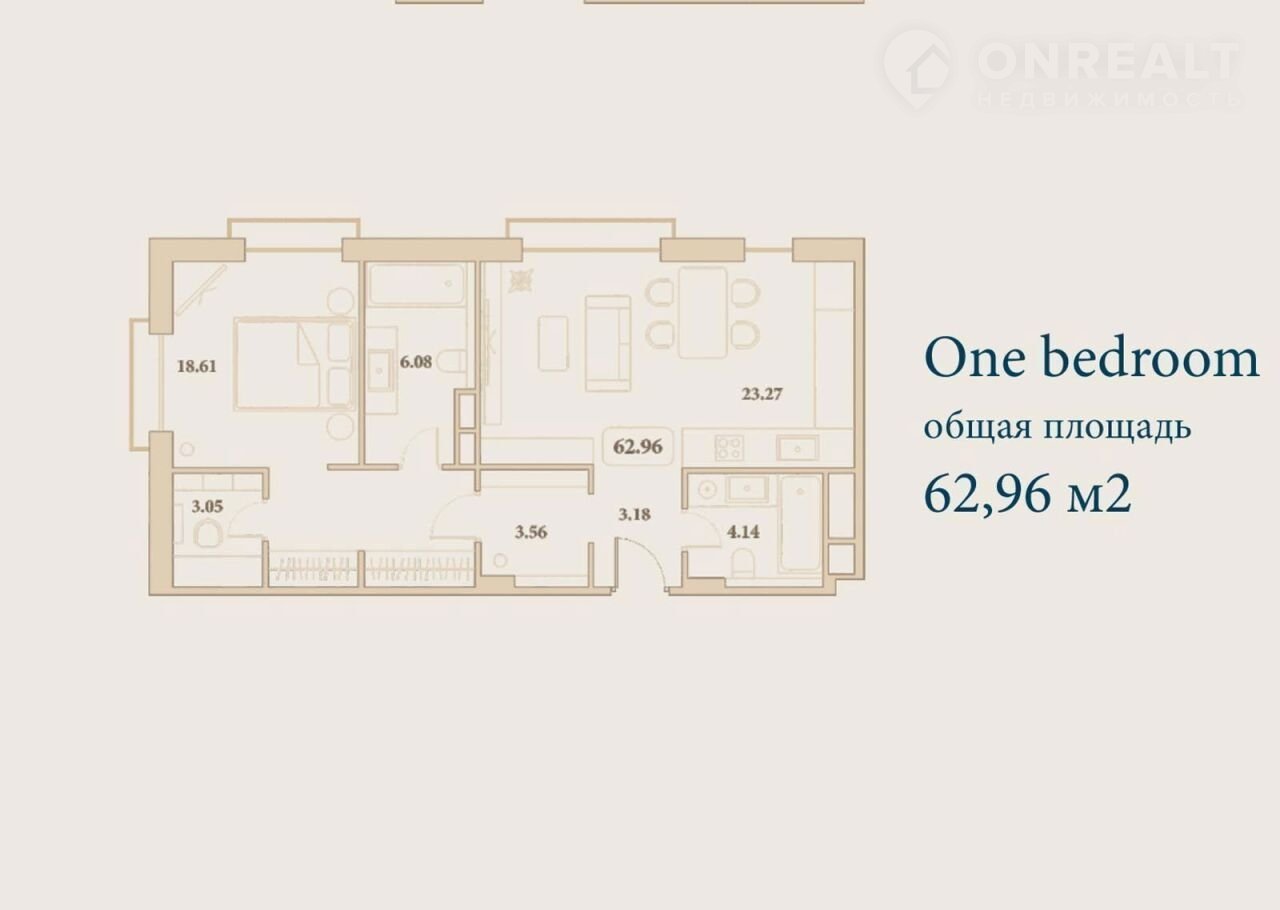 Общая площадь 64.4 м2