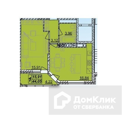 Общая площадь 44.05 м2