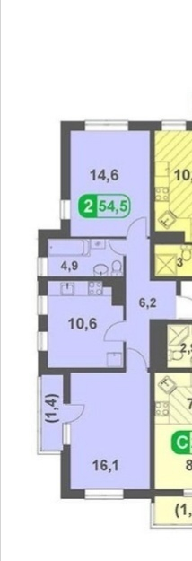 Общая площадь 54.5 м2
