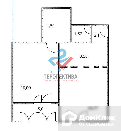 Жилая площадь 32.86 м2