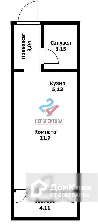 Общая площадь 27 м2