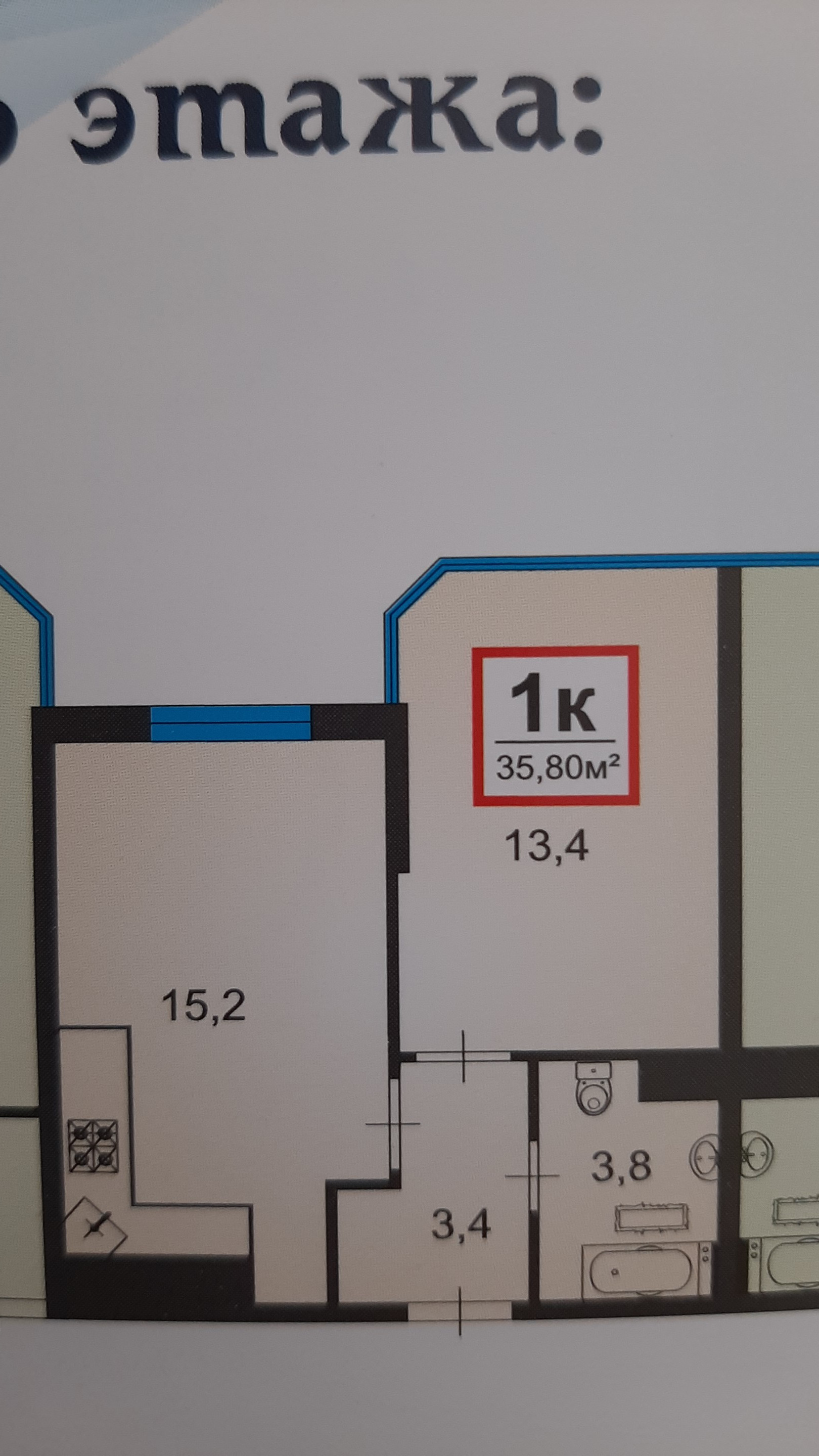 Общая площадь 35.8 м2