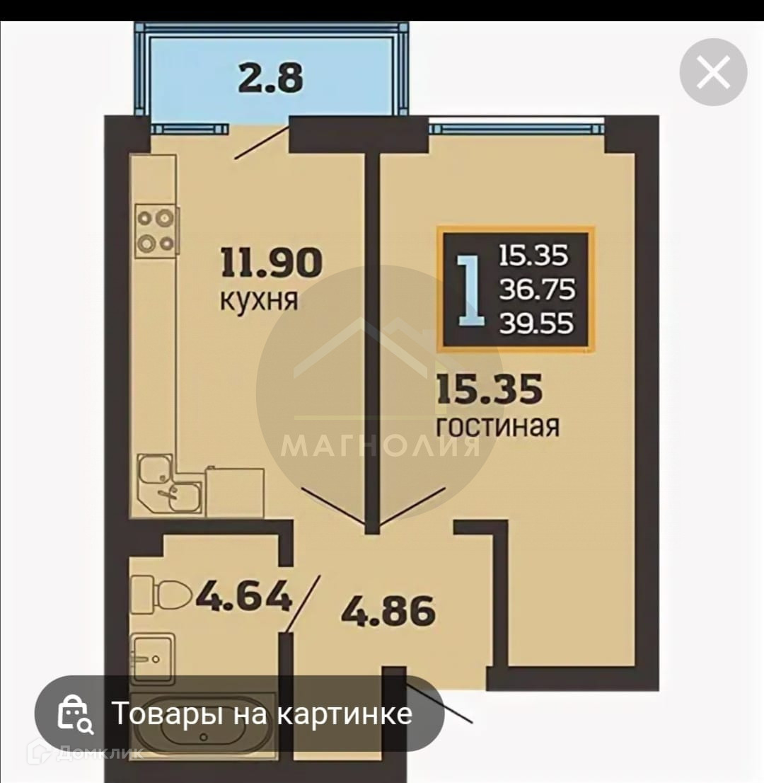 1-комнатная квартира, 40 м2, этаж 2 / 8, на продажу в Анапе, улица Ивана Голубца, 147