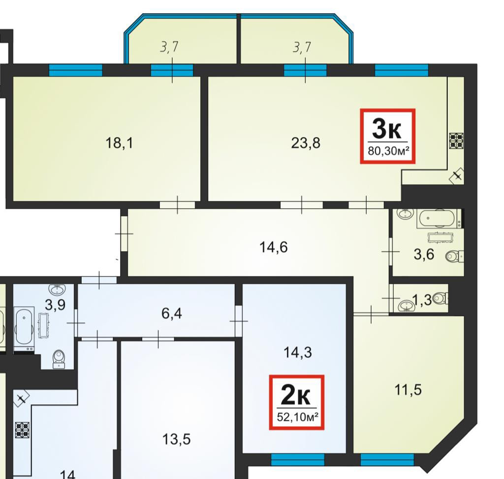 Общая площадь 80.3 м2