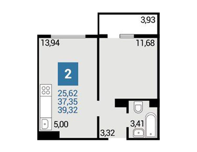 Общая площадь 42 м2