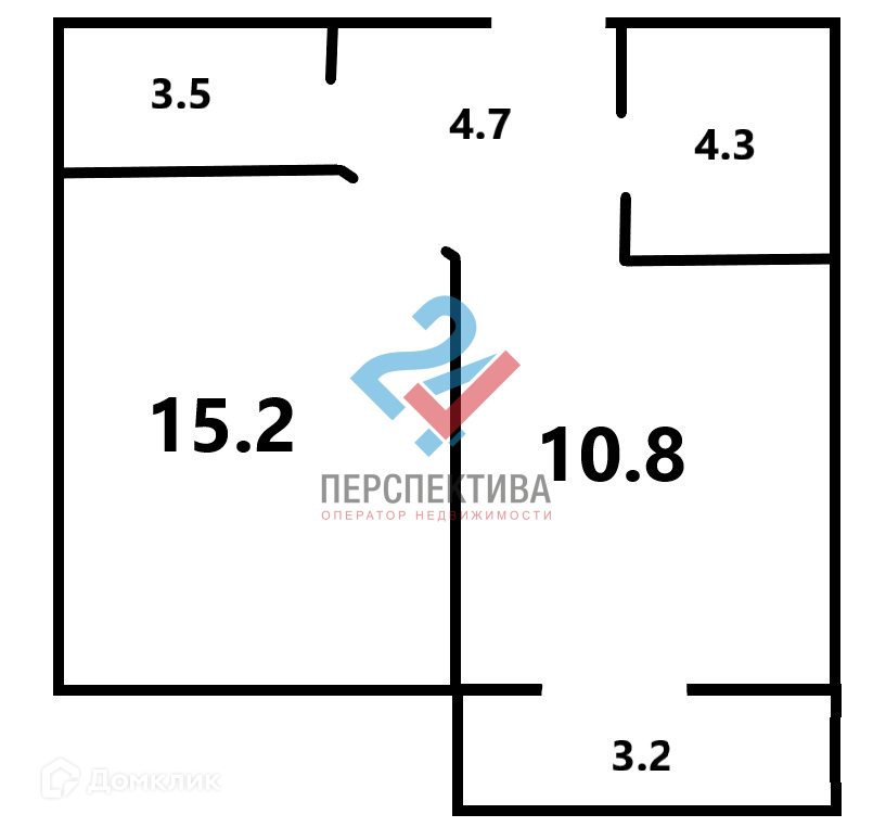 Жилая площадь 15.2 м2